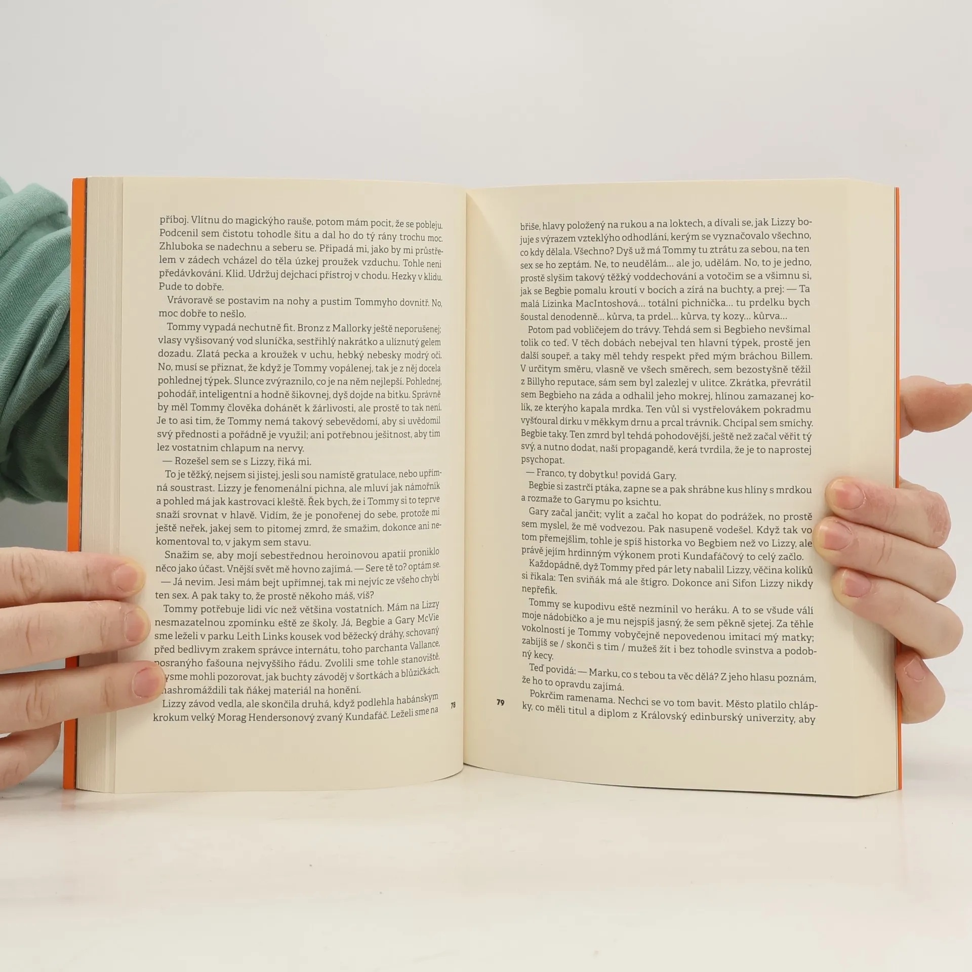 V revidovaném překladu vychází nejslavnější Welshova kniha. Autorovi se v ní podařilo něco nevídaného: vzít téma zralé pro sociologické studie o deprivované mládeži a napsat zábavný a propracovaný román, s jehož hrdiny musí čtenář sympatizovat, přestože ho jejich jednání často děsí a odpuzuje. Ne nadarmo podle románu vznikl jeden z nejpopulárnějších filmů britské kinematografie. Welshův román i film Dannyho Boyla donutil ty „slušné“, aby svůj životní styl konfrontovali s životem lidí, kteří unikají před „správným životem“ i za cenu sebezničení.