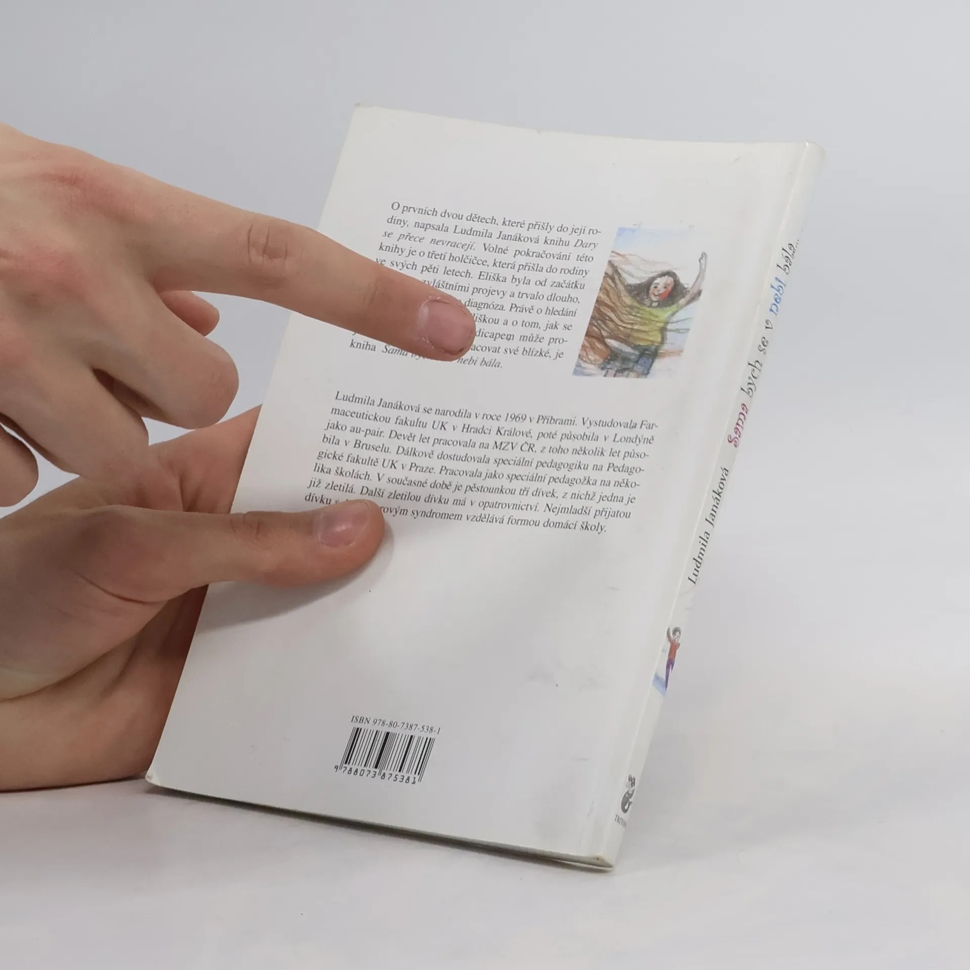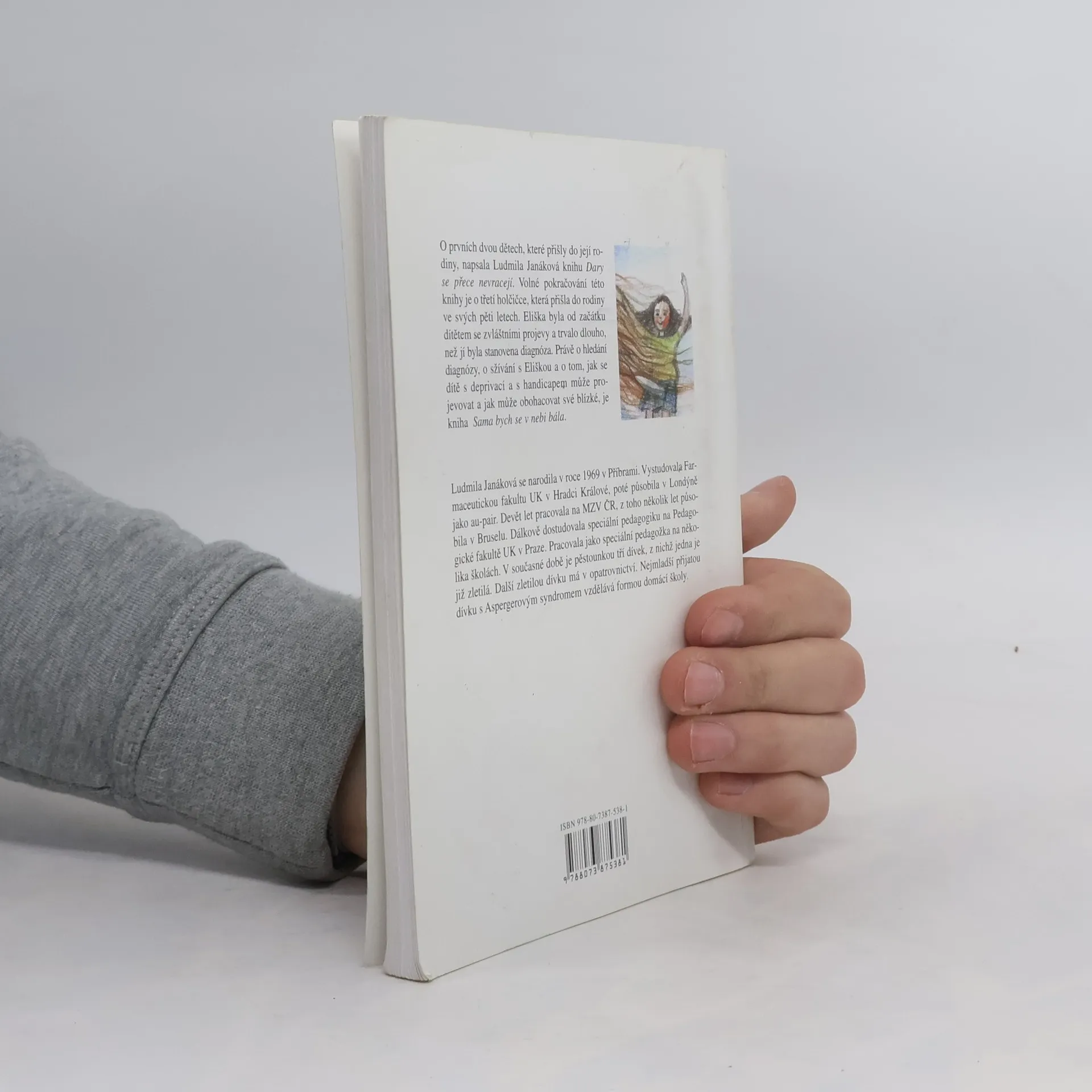 O prvních dvou dětech, které přišly do její rodiny, napsala Ludmila Janáková knihu Dary se přece nevracejí. Volné pokračování této knihy je o třetí holčičce, která přišla do rodiny ve svých pěti letech. Eliška byla od začátku dítětem se zvláštními projevy a trvalo dlouho, než jí byla stanovena diagnóza. Právě o hledání diagnózy, o sžívání s Eliškou a o tom, jak se dítě s deprivací a s handicapem může projevovat a jak může obohacovat své blízké, je kniha Sama bych se v nebi bála.
