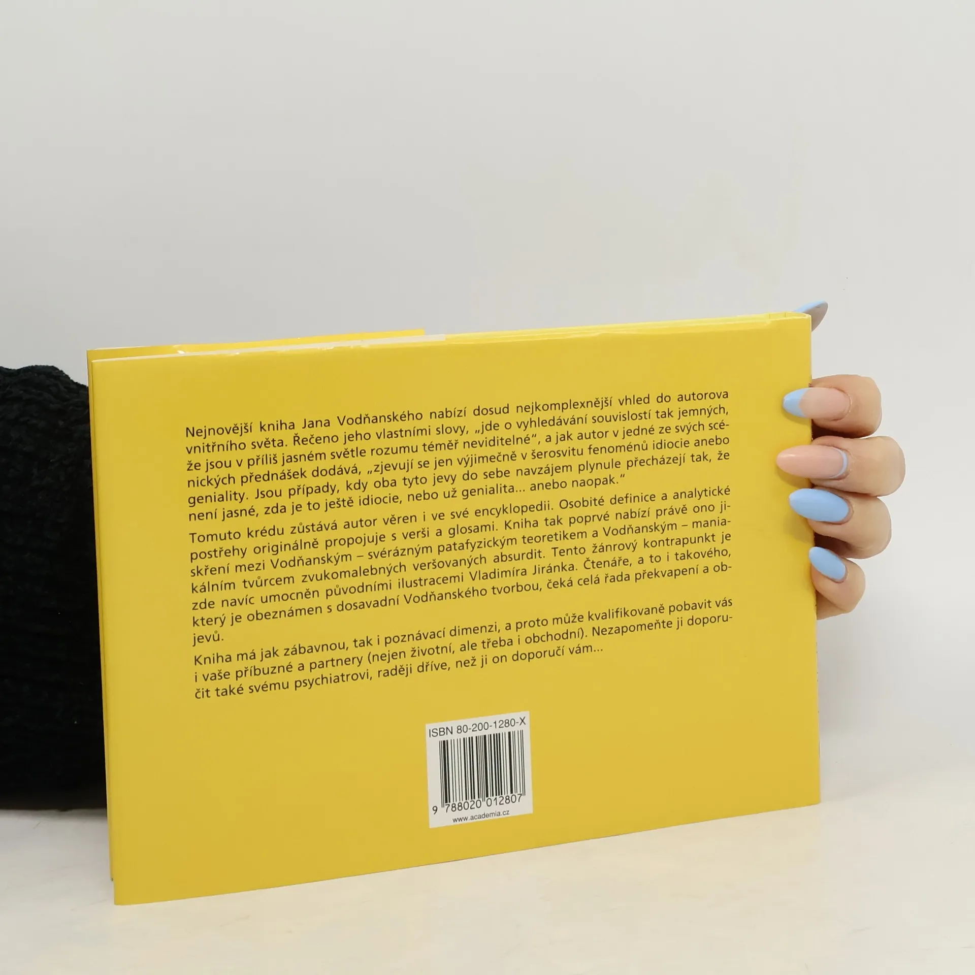 Nejnovější kniha Jana Vodňanského nabízí dosud nejkomplexnější vhled do autorova vnitřního světa. Řečeno jeho vlastními slovy, "jde o vyhledávání souvislostí tak jemných, že jsou v příliš jasném světle rozumu téměř neviditelné", a jak autor v jedné ze svých scénických přednášek dodává, "zjevují se jen výjimečně v šerosvitu fenoménů idiocie anebo geniality. Jsou případy, kdy oba tyto jevy do sebe navzájem plynule přecházejí tak, že není jasné, zda je to ještě idiocie, nebo už genialita... anebo naopak." Tomuto krédu zůstává autor věren i ve své encyklopedii. Osobité definice a analytické postřehy originálně propojuje s verši a glosami. Kniha tak poprvé nabízí právě ono jiskření mezi Vodňanským - svérázným patafyzickým teoretikem a Vodňanským - maniakálním tvůrcem zvukomalebných veršovaných absurdit. Tento žánrový kontrapunkt je zde navíc umocněn původními ilustracemi Vladimíra Jiránka. Čtenáře, a to i takového, který je obeznámen s dosavadní Vodňanského tvorbou, čeká celá řada překvapení a objevů. Kniha má jak zábavnou, tak i poznávací dimenzi, a proto může kvalifikovaně pobavit vás i vaše příbuzné a partnery (nejen životní, ale třeba i obchodní). Nezapomeňte ji doporučit také svému psychiatrovi, raději dříve, než ji on doporučí vám...