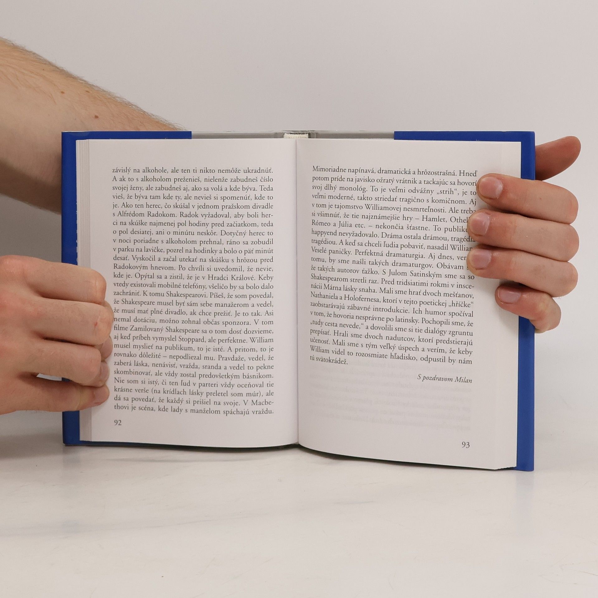 Po celé dva roky si Milan Lasica a Jiří Stránský vyměňovali své nápady a postřehy o době, o sobě, o paměti osobní i společenské prostřednictvím dopisů. Že je tento žánr v našem běžném životě už téměř zcela nahrazen stručnými sms zprávami či elektronickou poštou, ve kterých je čím dál více prostoru pro nedbalý jazyk plný gramatických chyb a překlepů, víme všichni. Zato hlubokou myšlenku, bonmot či poezii v nich najdeme málokdy. Je tedy na čtenáři, aby se začetl do epištol moudrých mužů, které oslňují jako krásná literatura svým obsahem i vzletnou formou. Dopisy jsou doplněny výběrem fejetonů obou autorů.