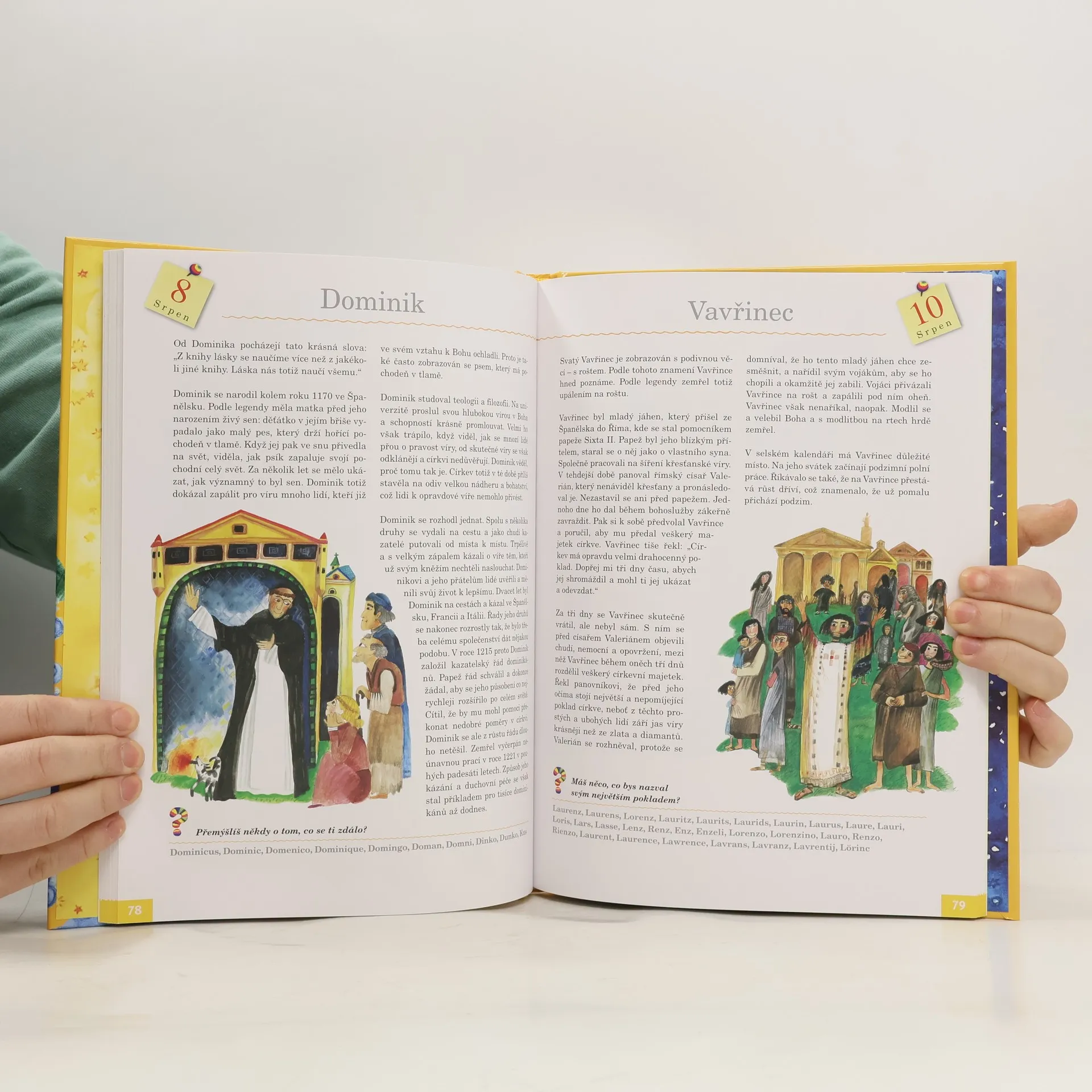 Slovník křestních jmen, která běžně používáme, s objasněním jejich původu formou krátkých životopisů s barevnými ilustracemi. Určeno především dětem od osmi let.