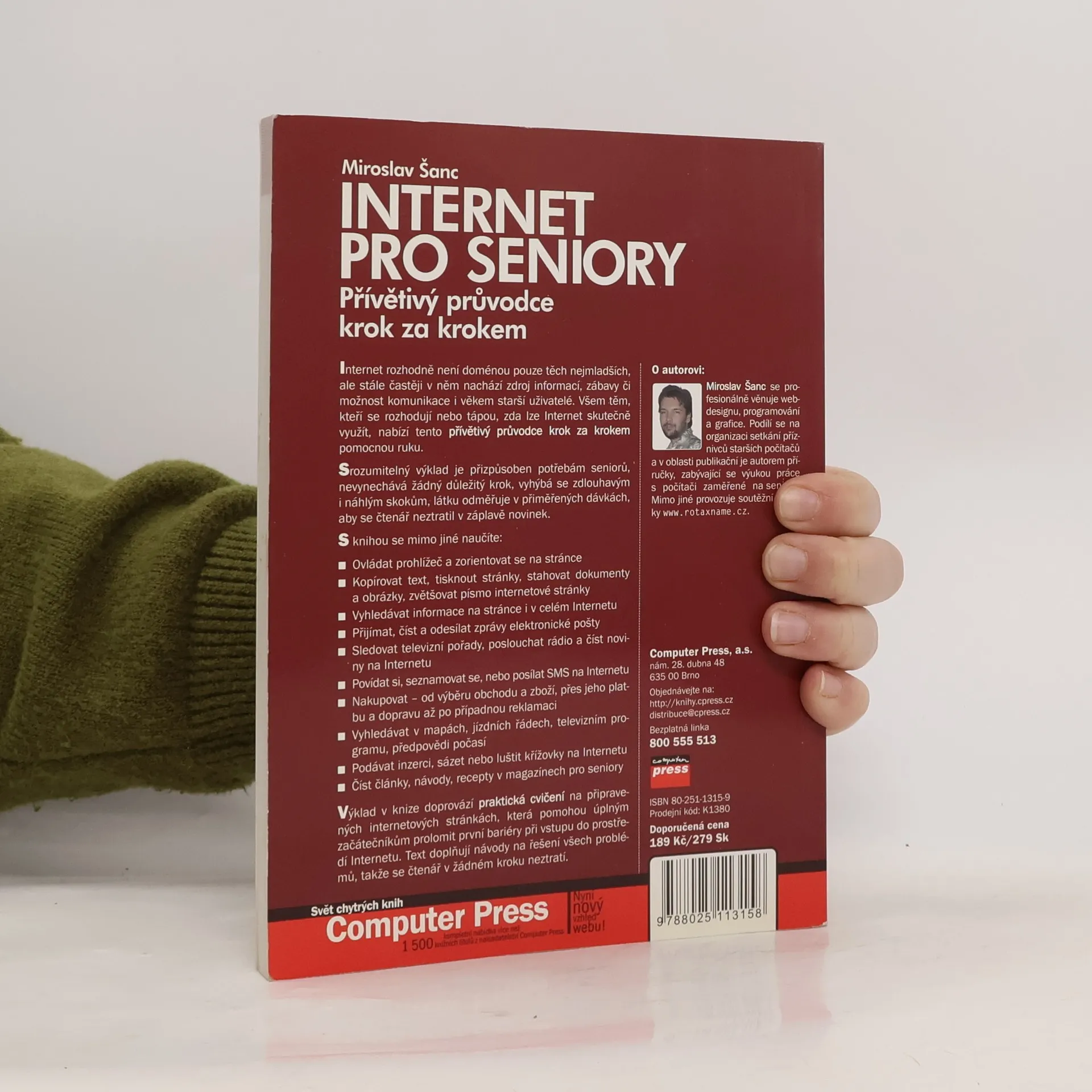 Internet rozhodne není doménou pouze těch nejmladších, ale stále častěji v něm starší uživatelé. Všem těm, kteří se rozhodují nebo tápou, zda lze Internet skutečně využít, nabízí tento přívětivý průvodce krok za krokem pomocnou ruku. Srozumitelný výklad je přizpůsoben potřebám seniorů, nevynechává žádný důležitý krok, vyhýbá se zdlouhavým i náhlým skokům, látku odměřuje v přiměřených dávkách, aby čtenář neztratil v záplavě novinek.