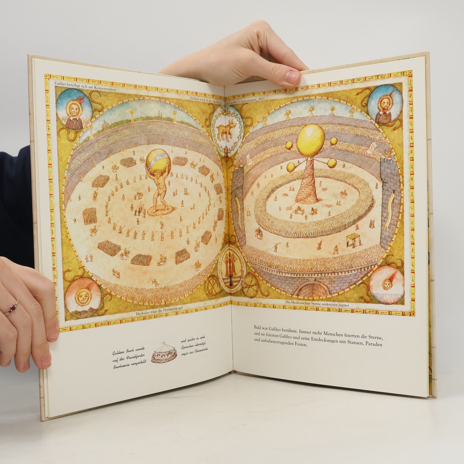 Ein Leben lang beschäftigt sich Galilei mit den Sternen. Er macht Experimente, baut ein großes, neuartiges Teleskop und richtet es auf den Mond und andere Gestirne. Er forscht bis zum Beweis, daß die Erde gar nicht der Mittelpunkt der Welt sein kann. Eine atemberaubende Geschichte, die von Peter Sís nicht nur so anschaulich vor Augen geführt wird, daß sie jedem Kind einleuchtet, sondern auch gleichzeitig die Faszination der Gestirne leuchtend widerspiegelt. NOMINIERT FÜR DEN DEUTSCHEN JUGENDLITERATURPREIS 1998
