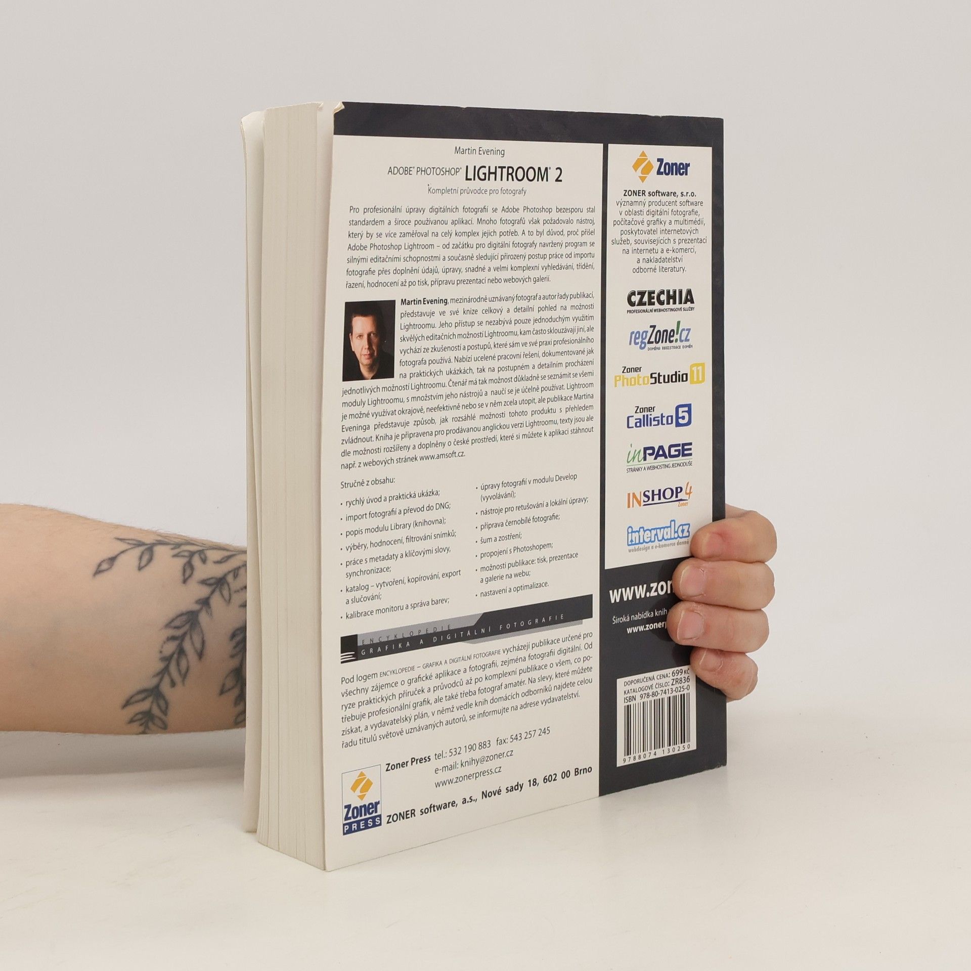 Digitální fotografie je dnes běžná nejen mezi profesionály, ale i amatéry. S vývojem digitálních fotoaparátů se zlepšují nástroje pro úpravu, správu a archivaci fotografií, včetně práce se raw soubory a možností tisku či publikace. Adobe Photoshop se stal standardem pro profesionální úpravy, ale mnozí fotografové hledali komplexnější nástroj, což vedlo k vzniku Adobe Photoshop Lightroom. Tento program je navržen speciálně pro digitální fotografy a nabízí silné editační schopnosti, které pokrývají celý proces od importu přes úpravy až po tisk a prezentace. Martin Evening, mezinárodně uznávaný fotograf, poskytuje v této knize detailní pohled na možnosti Lightroomu, vycházející z jeho vlastních zkušeností. Čtenář se seznámí se všemi moduly a nástroji Lightroomu a naučí se je efektivně používat. Kniha je určena pro anglickou verzi Lightroomu, přičemž texty jsou doplněny o české prostředí. Obsah zahrnuje úvod do aplikace, import fotografií, práci s knihovnou, úpravy obrazu, černobílou fotografii, propojení s Photoshopem, tisk a prezentaci. K dispozici jsou také dodatky a rejstřík pro snadnou orientaci.