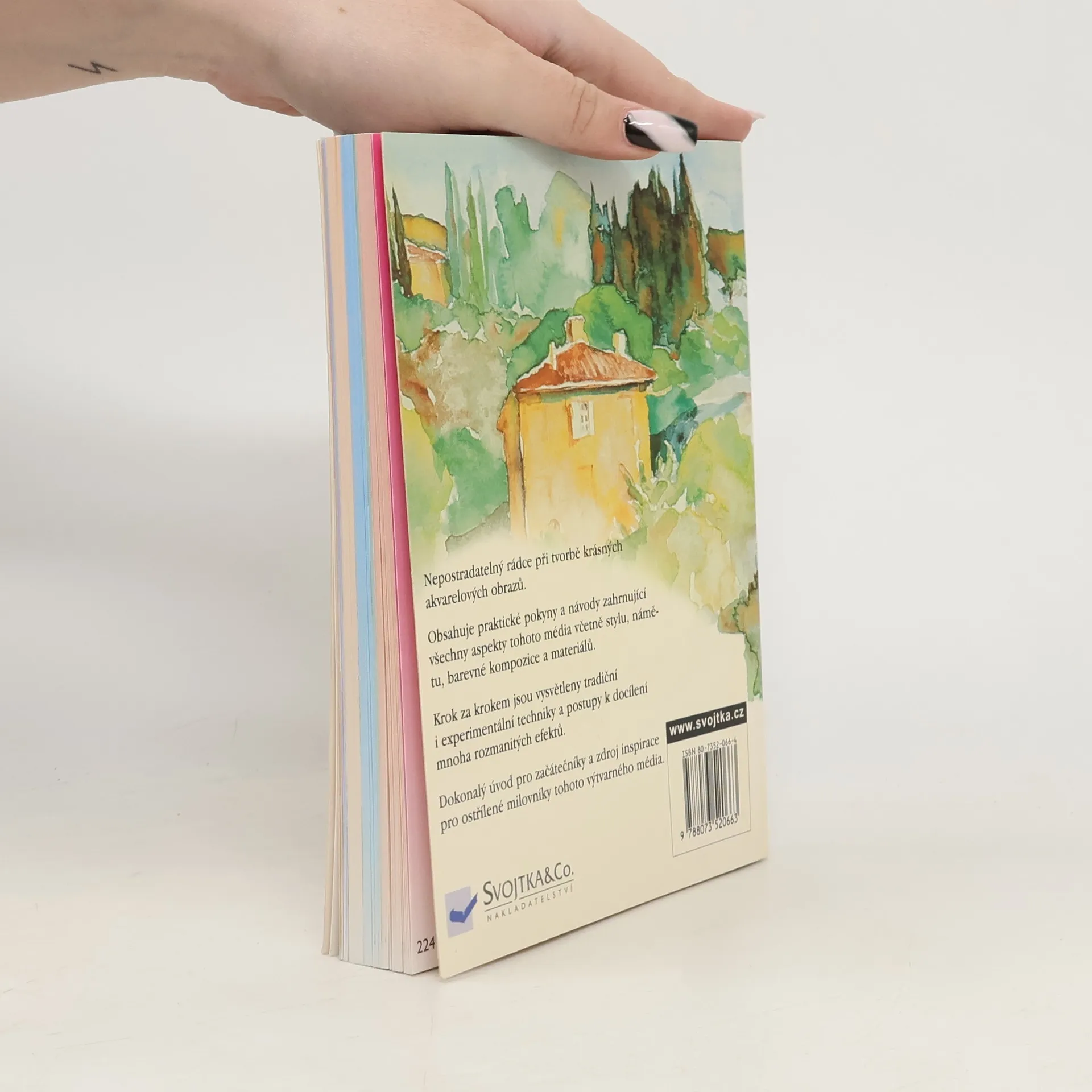 Tato kniha je nepostradatelný rádce při tvorbě krásných akvarelových obrazů. Obsahuje praktické pokyny a návody zahrnující všechny aspekty tohoto výtvarného prostředku, včetně stylu, námětu, barevné kompozice a materiálů. Krok za krokem jsou vysvětleny tradiční i experimentální techniky a postupy k docílení mnoha rozmanitých efektů. Dokonalý úvod pro začátečníky a zdroj inspirace pro ostřílené milovníky tohoto výtvarného média.
