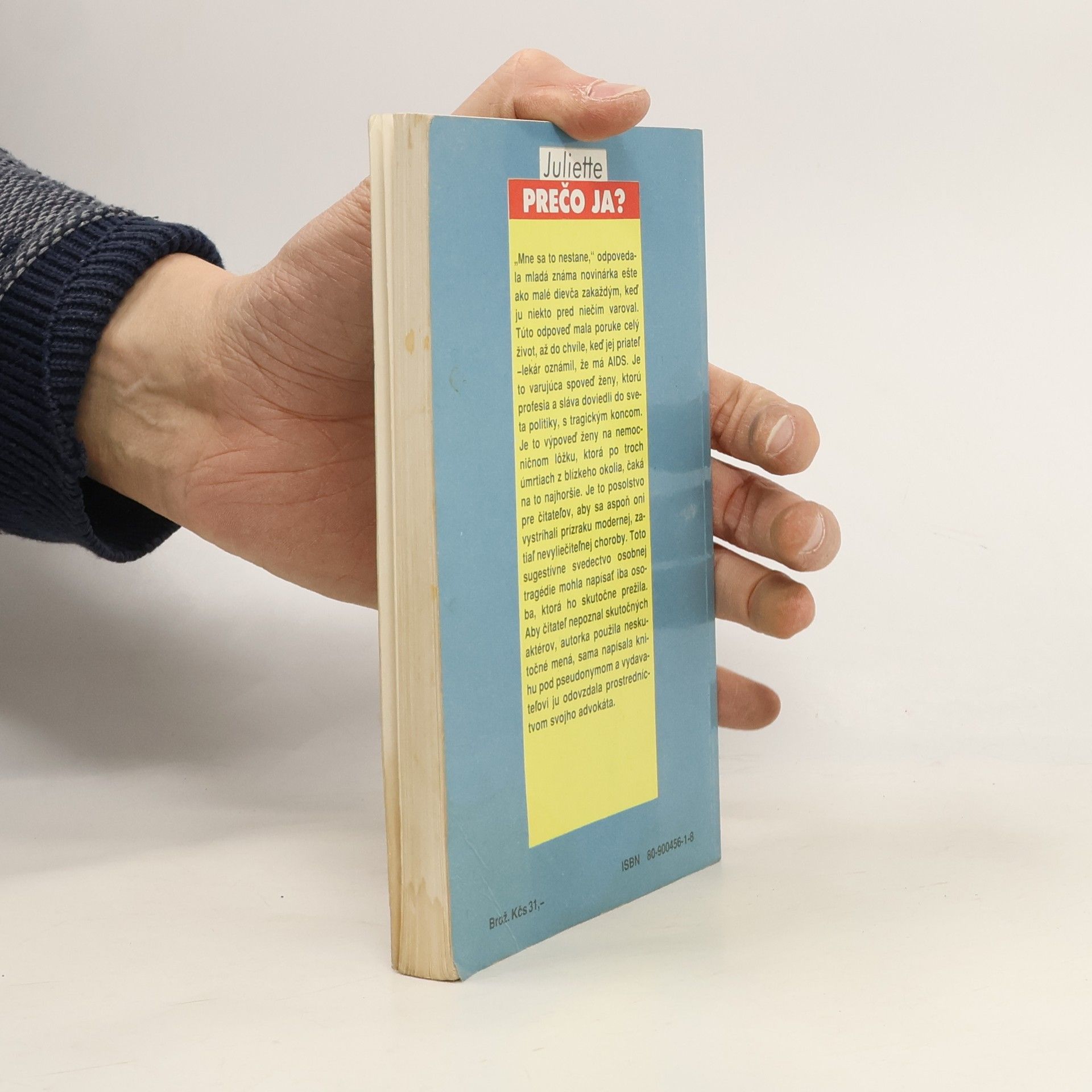 „Mne sa to nestane," odpovedala mladá známa novinárka ešte ako malé dievča zakaždým, keď ju niekto pred niečím varoval. Túto odpoveď mala poruke celý život, až do chvíle, keď jej priateľ -lekár oznámil, že má AIDS. Je to varujúca spoveď ženy, ktorú profesia a sláva doviedli do sveta politiky, s tragickým koncom. Je to výpoveď ženy na nemocničnom lôžku, ktorá po troch úmrtiach z blízkeho okolia, čaká na to najhoršie. Je to posolstvo pre čitateľov, aby sa aspoň oni vystríhali prízraku modernej, zatiaľ nevyliečiteľnej choroby. Toto sugestívne svedectvo osobnej tragédie mohla napísať iba osoba, ktorá ho skutočne prežila. Aby čitateľ nepoznal skutočných aktérov, autorka použila neskutočné mená, sama napísala knihu pod pseudonymom a vydavateľovi ju odovzdala prostredníctvom svojho advokáta.