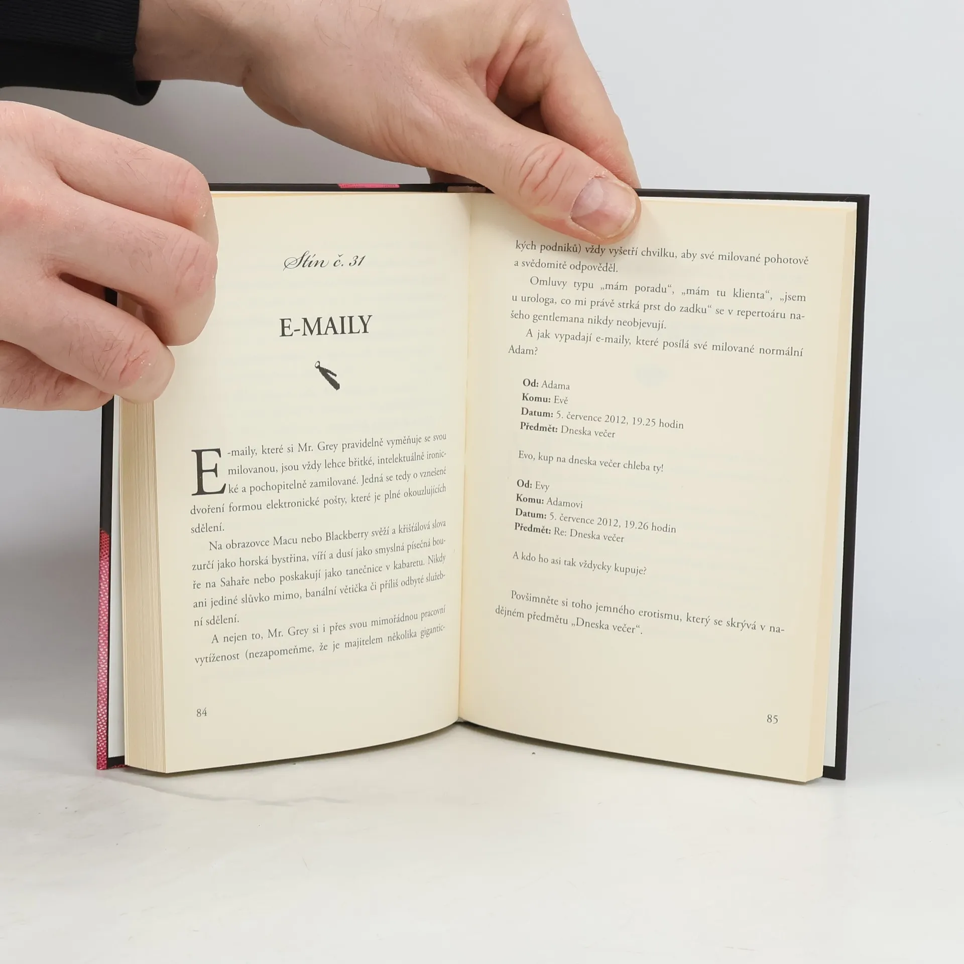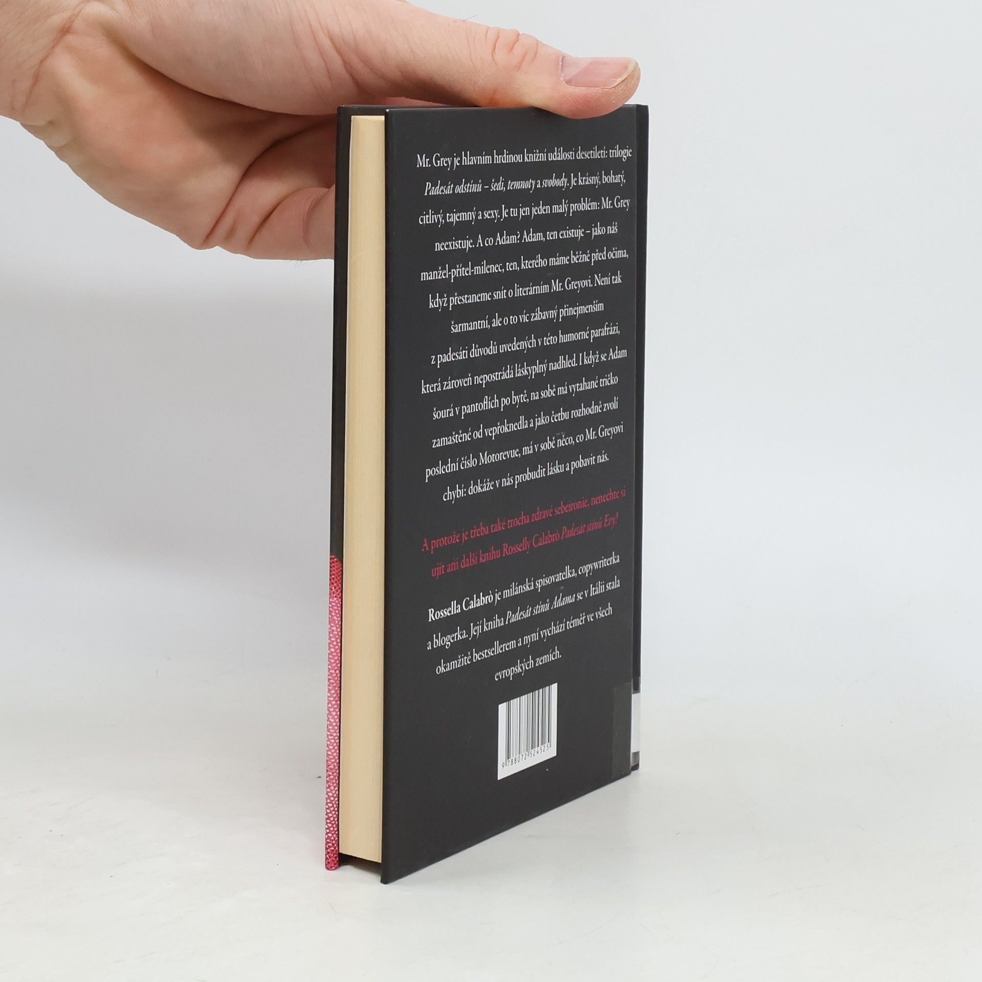 Mr. Grey je krásný, bohatý, citlivý, tajemný a sexy. Zato Adam představuje našeho manžela, milence, přítele... Tato humorná parafráze však nepostrádá láskyplný nadhled. Mr. Grey je krásný, bohatý, citlivý, tajemný a sexy. Je hlavním hrdinou knižní události desetiletí: trilogie Padesát odstínů - šedi, temnoty a svobody. Je tu jen jeden malý problém: Mr. Grey neexistuje. A co Adam? Adam ten existuje. Když Mr. Grey zdvořile konverzuje se svou milovanou, Adam předříká celou abecedu krkáním. Když se Mr. Grey chopí velení, Adam uchopí televizní ovladač. Když Mr. Grey preluduje srdcervoucí tóny na klavíru, našinec Adam se láskyplně dloube v nose na gauči. Adam je prostě náš manžel-přítel-milenec, ten, kterého máme běžně před očima, když přestaneme snít o literárním Mr. Greyovi. Není tak šaramantní, ale o to víc zábavný alespoň z padesáti důvodů, uvedených v této veselé knížce. Protože, i když se Adam šourá v pantoflích po bytě a na sobě má vytahané tričko zamaštěné od vepřoknedla a jako četbu rozhodně zvolí poslední číslo Motorevue, má v sobě něco, co Mr. Greyovi chybí: dokáže v nás probudit lásku a pobavit nás. Takže poté, co jsme jedním dechem přečetly celou trilogii E. L. Jamesové, jsme si položily otázku, kdo že je ten mužský exemplář, který hlasitě chrápe po našem boku? Tato kniha nám to pomůže odhalit a hlavně nás pobaví, protože nakonec smích je všeobecně tou nejerotičtější pomůckou.