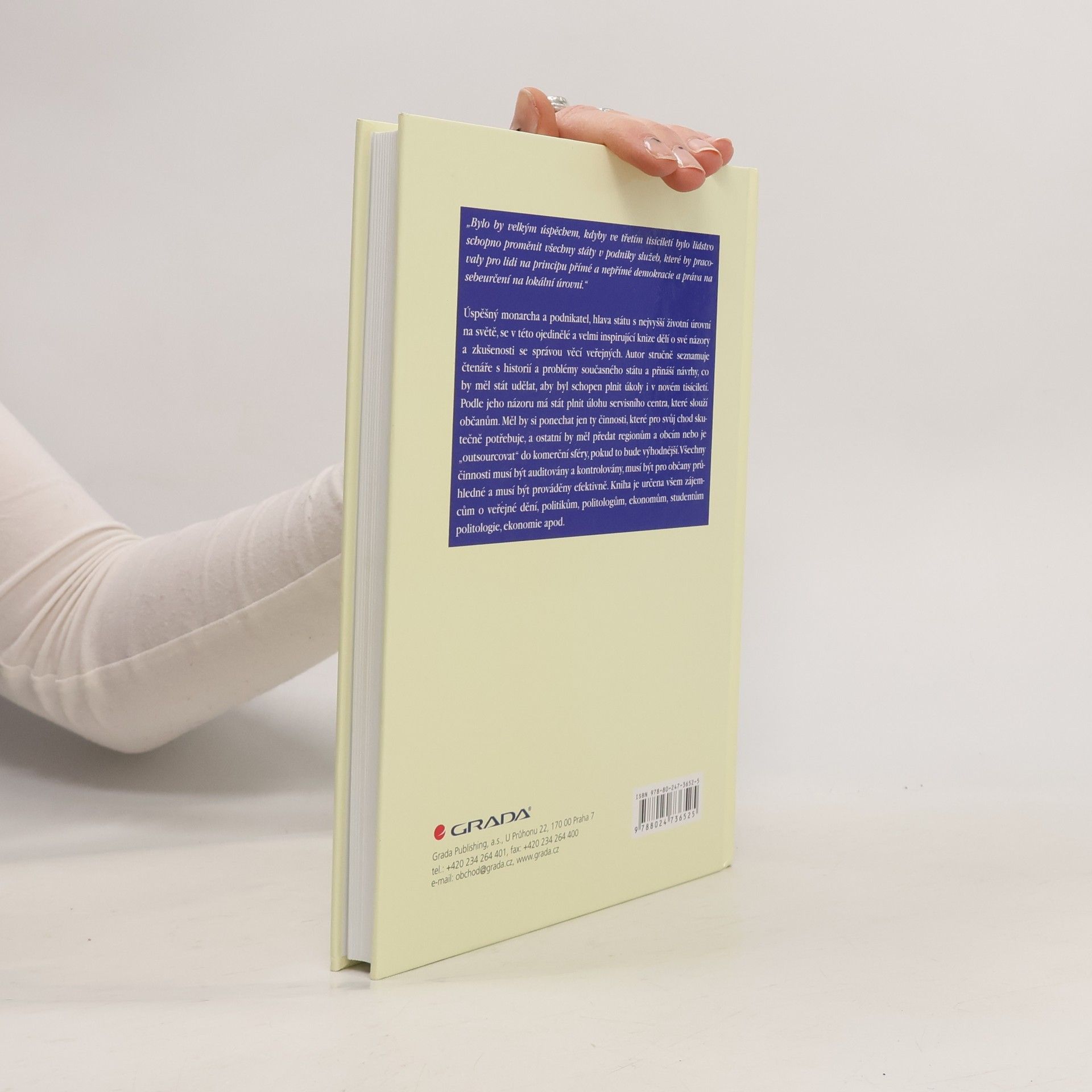 V knize kníže Hans Adam II. obhajuje trvající význam národních států coby politických aktérů. Hájí demokracii jako nejlepší formu vlády, a předpokládá, že se Čína a Rusko postupně transformují, což ovšem bude ještě dlouhý a složitý proces. Také se vyjadřuje o své roli hlavy státu v knížectví jako o něčem, co má velký smysl a legitimitu, ovšem jen za předpokladu souhlasu lidu. Tvrdí dále, že vláda státu se má omezit a soustředit pouze na malou část úkolů, a říká, že lid "má osvobodit stát od všech nepodstatných úkolů a zátěží, kterými byl obtěžkán během posledních sta let, a který stát vzdálil od jeho hlavních úkolů: zachování vlády práva a zahraniční politiky."