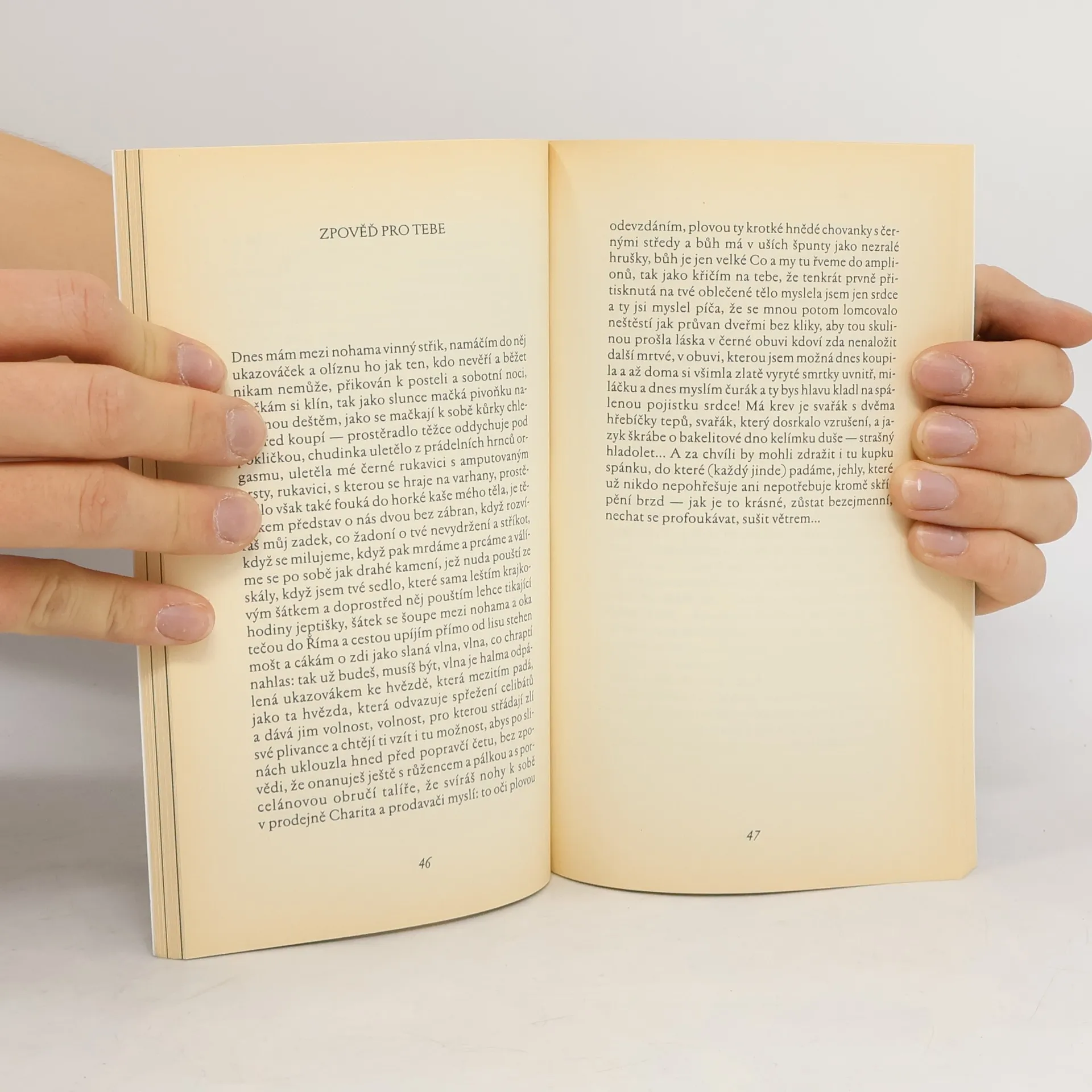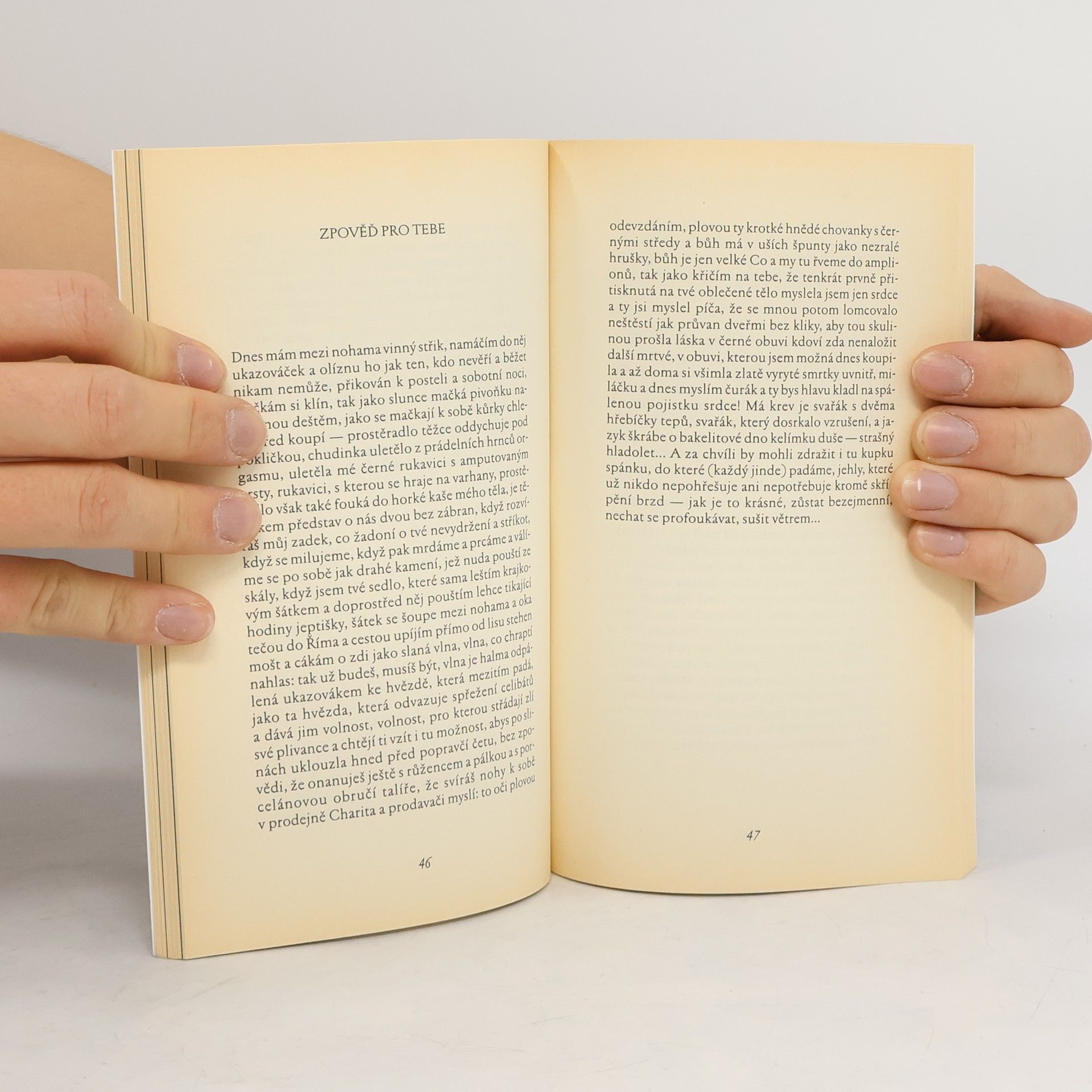 V kontextu autorčina díla, (a bez nadsázky lze dodat, že i v kontextu českého písemnictví,) představuje kniha Prstem po mapě těla zcela výjimečný literární počin. Její erotické básně v próze zaujmou nespoutanou imaginací kontrastující s bravurním využitím možností jazyka; spojením lyrického nazíraní skutečnosti s až brutálně otevřeným pohledem na intimní sféru. Je to výpověď nezvyklá už samotným faktem, že přichází právě od ženy-autorky. Cosi obdobného zatím známe snad jen z několika (dnes téměř kultovních) básní Jany Krejcarové, jejíž texty měly ovšem spíše epigramatický ráz. Po půlstoletí je zde znovu práce, která se může stát - a jistě i stane - skutečnou literární událostí. Druhé, opravené vydání.