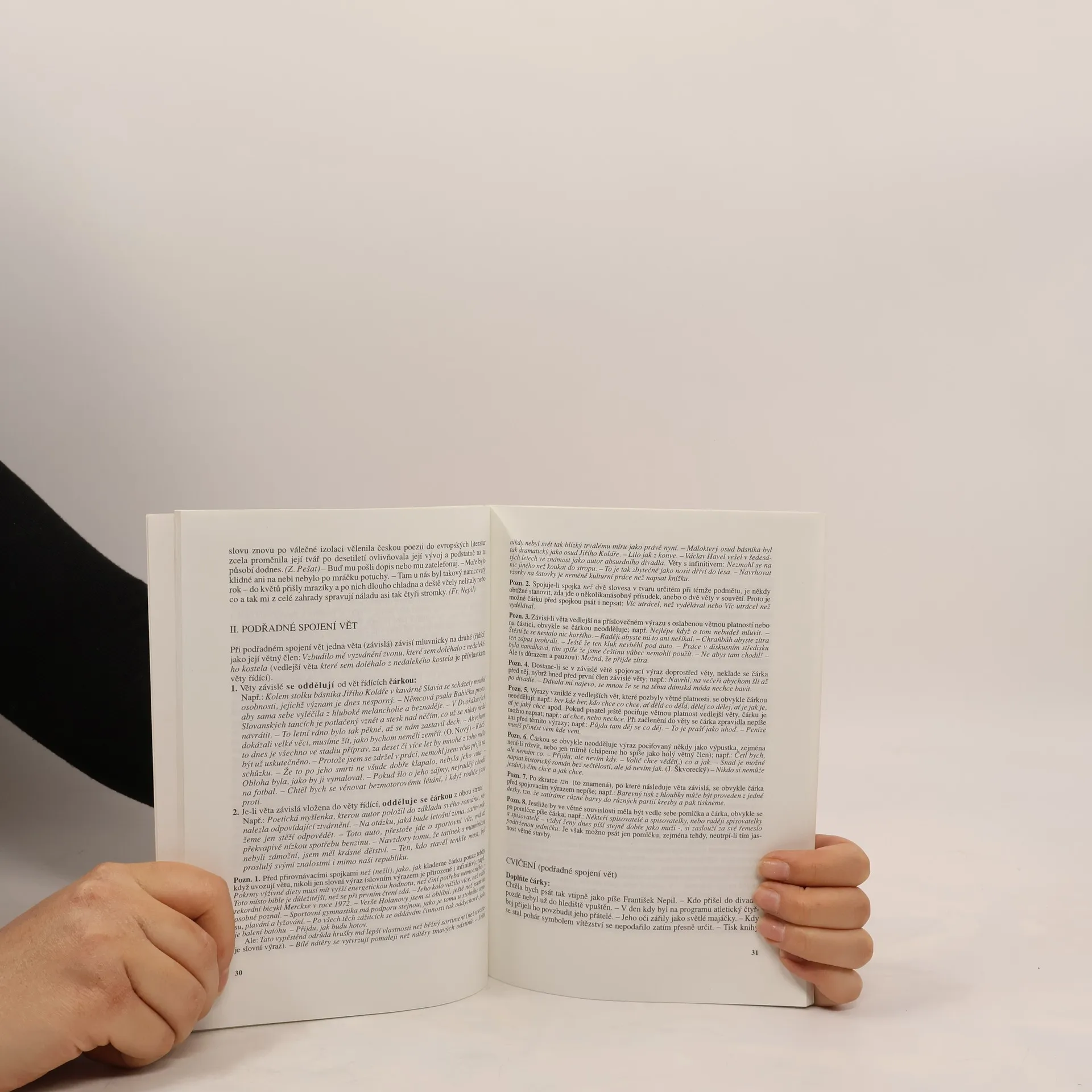 Průvodce interpunkcí pro střední školy a veřejnost. Příručka vychází z Pravidel českého pravopisu (1993), ale rozšiřuje a doplňuje soubor pravidel tam obsažených o další případy psaní čárek, s nimiž se uživatel jazyka v písemné praxi může setkat. Kniha obsahuje také četná cvičení pro procvičení pravidel. Kontrolu procvičovaných jevů usnadňuje klíč připojený k příručce.