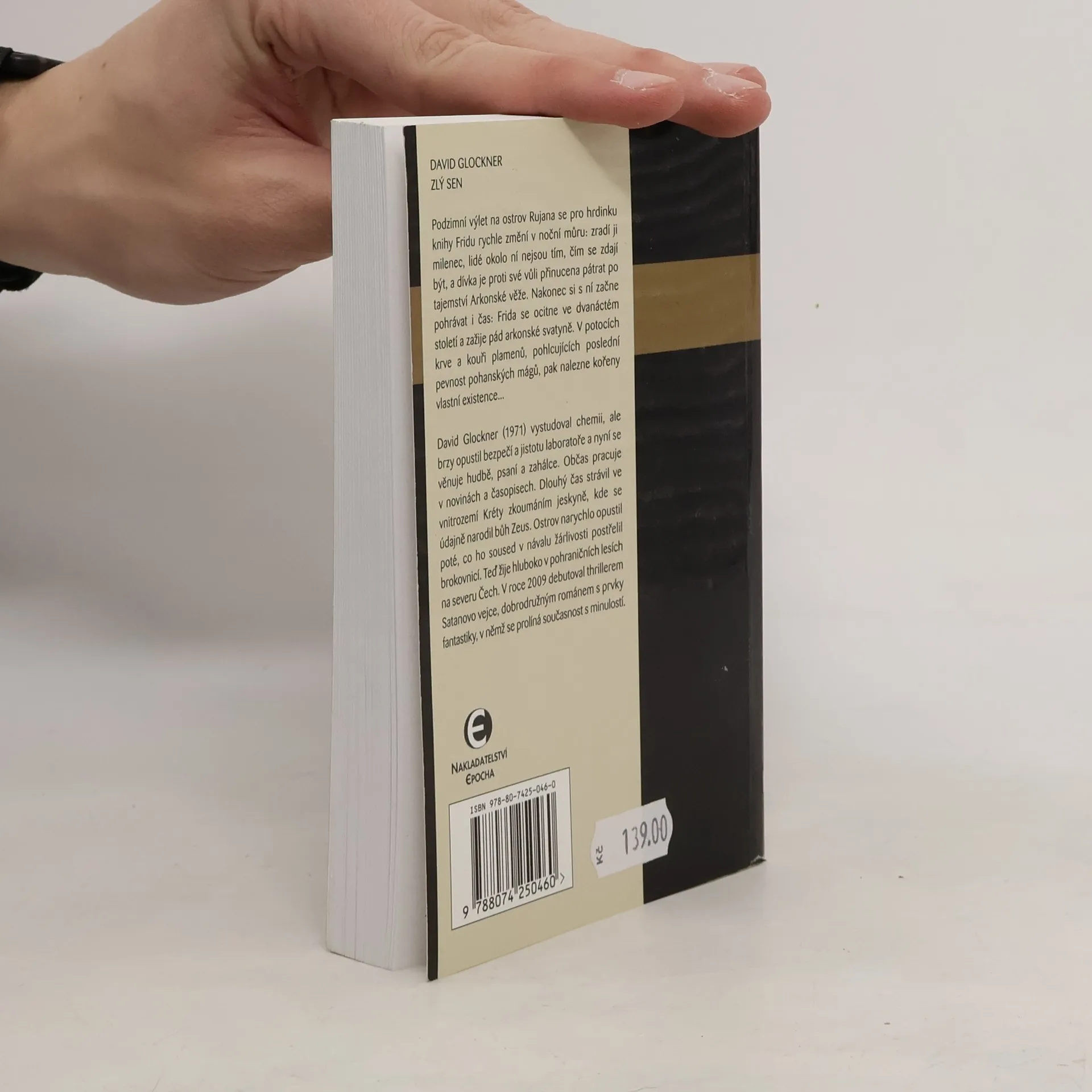 Podzimní výlet na ostrov Rujana se pro hrdinku knihy Fridu rychle změní v noční můru: zradí ji milenec, lidé okolo ní nejsou tím, čím se zdají být, a dívka je proti své vůli přinucena pátrat po tajemství Arkonské věže. Nakonec si s ní začne pohrávat i čas: Frida se ocitne ve dvanáctém století a zažije pád arkonské svatyně. V potocích krve a kouři plamenů, pohlcujících poslední pevnost pohanských mágů, pak nalezne kořeny vlastní existence... David Glockner (1971) vystudoval chemii, ale brzy opustil bezpečí a jistotu laboratoře a nyní se věnuje hudbě, psaní a zahálce. Občas pracuje v novinách a časopisech. Dlouhý čas strávil ve vnitrozemí Kréty zkoumáním jeskyně, kde se údajně narodil bůh Zeus. Ostrov narychlo opustil poté, co ho soused v návalu žárlivosti postřelil brokovnicí. Teď žije hluboko v pohraničních lesích na severu Čech. V roce 2009 debutoval thrillerem Satanovo vejce, dobrodružným románem s prvky fantastiky, v němž se prolíná současnost s minulostí.