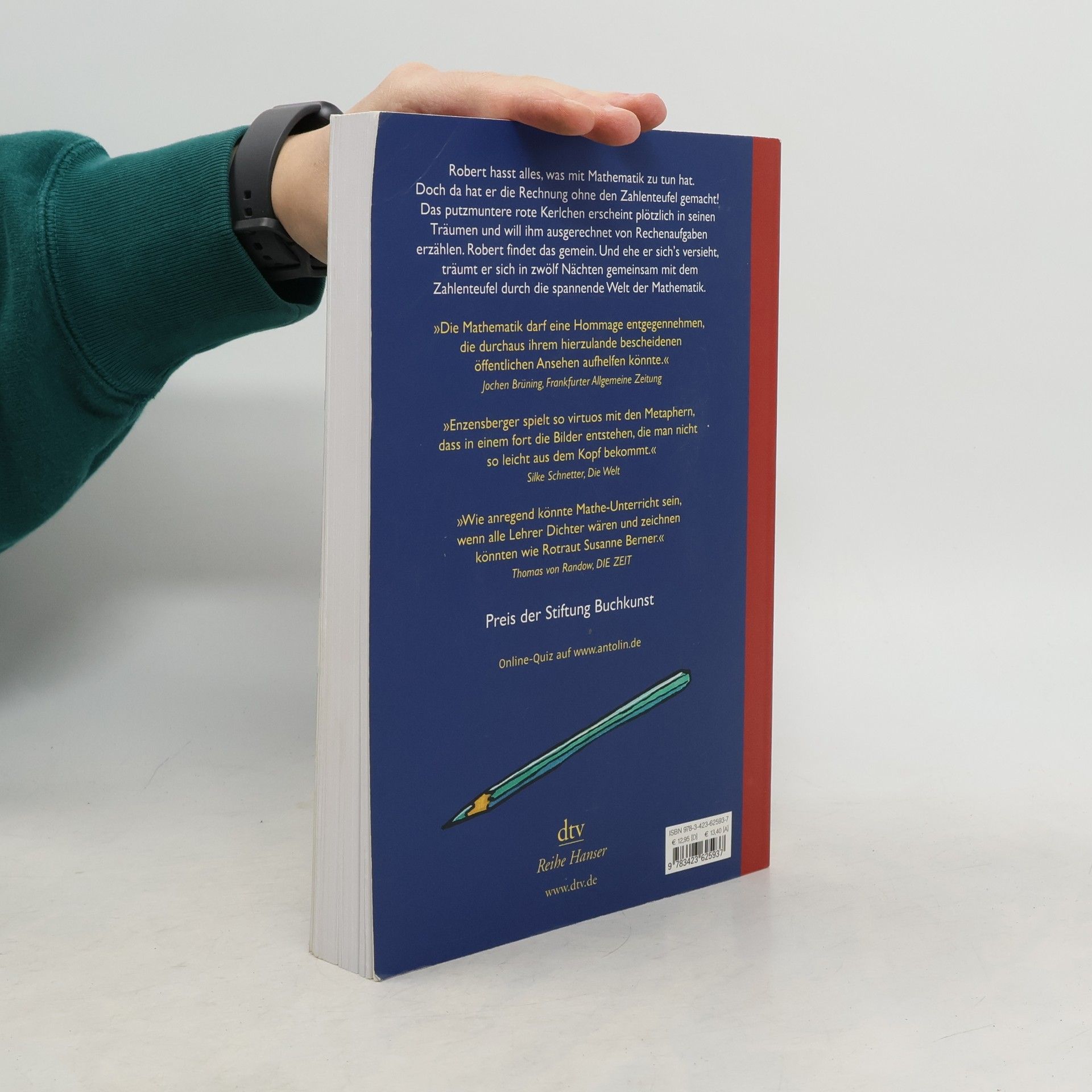 »Die vergnüglichste Einführung in die Rätsel der Mathematik.« Wolfgang Bergmann in ›TV-Hören und Sehen‹ Robert hat das Träumen satt. Weil ihm die unheimlichsten Dinge im Traum passieren, beschließt er, es nicht mehr zu tun. Doch da hat er die Rechnung ohne den Zahlenteufel gemacht! Plötzlich ist er da, wirbelt mit seinem geheimnisvollen Stock herum und zaubert aus ihm ganze Zahlenfolgen. In zwölf Nächten erzählt er Robert von hopsenden Zahlen, wie man Rettiche zieht und daß es auch eingebildete Zahlen gibt. Wer bei so vielen Rechenaufgaben auf die Mathematik Lust bekommt, auf den wartet zum Ende jedes Kapitels eine kleine Denkaufgabe. ›Der Zahlenteufel‹ wurde ausgezeichnet mit dem ›Luchs‹ und war eines der ›7 besten Bücher für junge Leser‹.