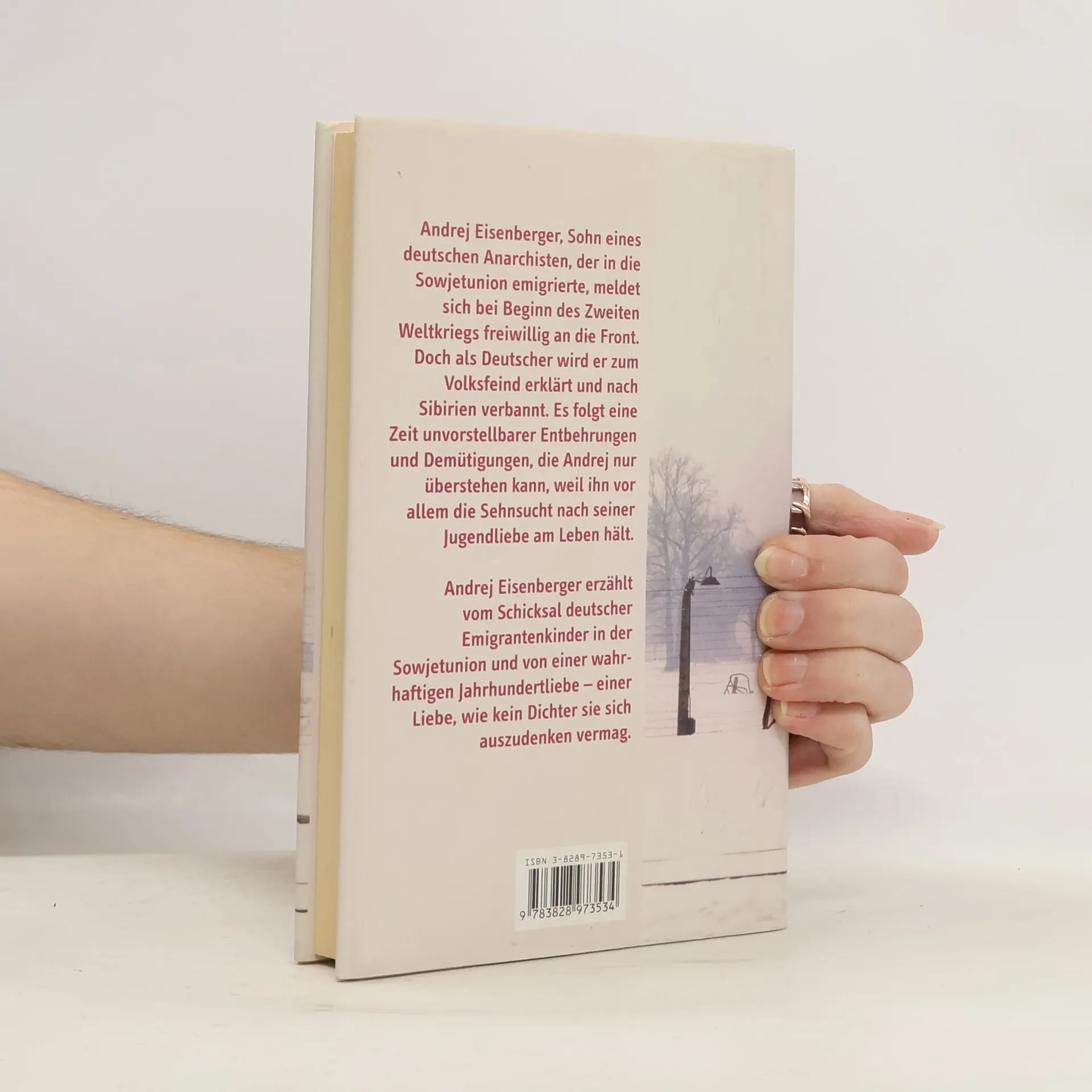 Andrej Eisenberger, Sohn eines deutschen Anarchisten, der in die Sowjetunion emigrierte, meldet sich bei Beginn des Zweiten Weltkriegs freiwillig an die Front. Doch als Deutscher wird er zum Volksfeind erklärt und nach Sibirien verbannt. Nach fünfzig Jahren und einer schrecklichen Zeit in der Verbannung gesteht er seiner Jugendliebe, dass vor allem sie es war, die ihn alles hat ertragen lassen. Andrej Eisenberger erzählt vom Schicksal deutscher Emigrantenkinder in der Sowjetunion und von einer wahrhaften Jahrhundertliebe - einer Liebe, wie kein Dichter sie sich auszudenken vermag.