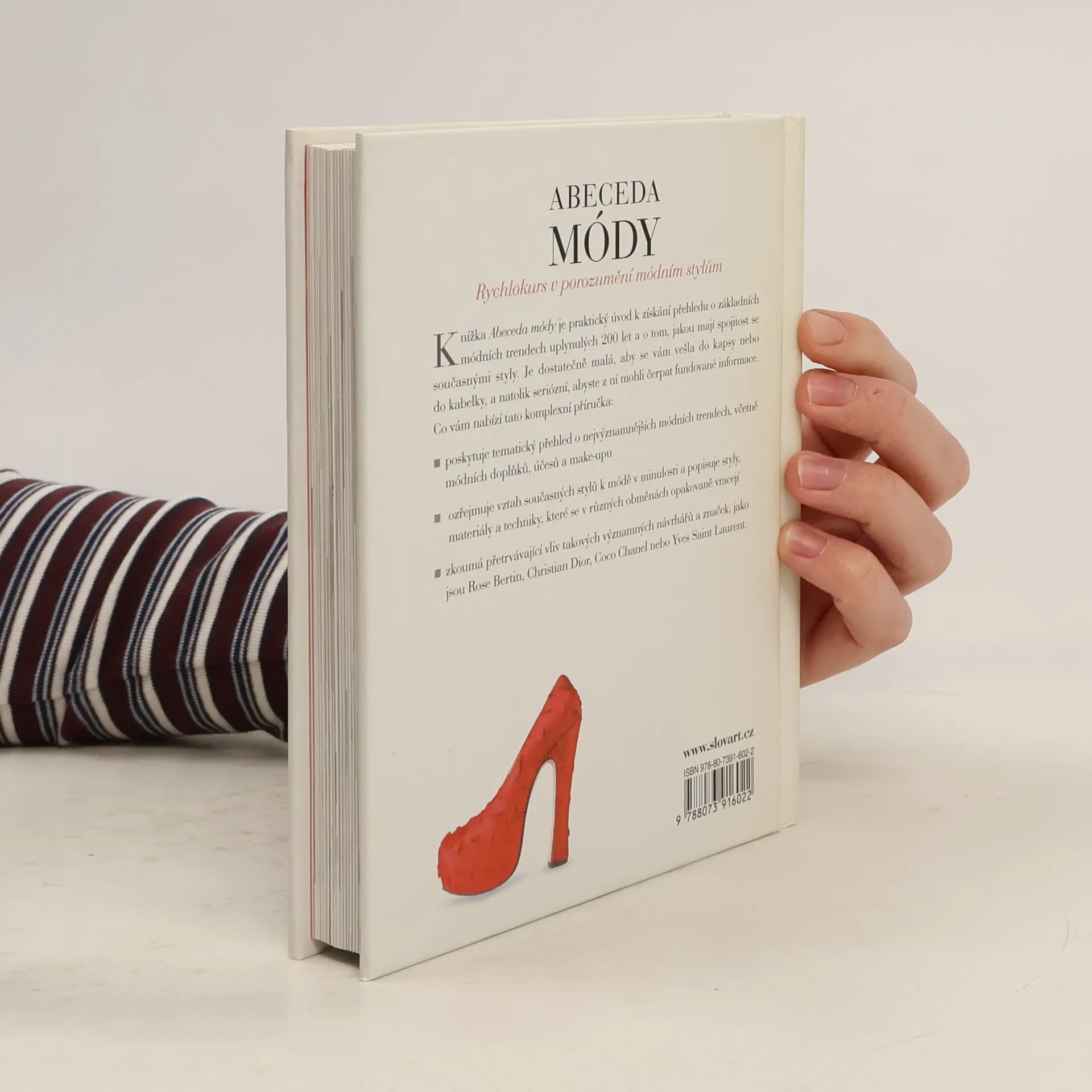 Móda je všude kolem nás a jen málokdo jí zůstává neovlivněn. A přesto: kolik lidí zná původ malých černých šatů, buřinky nebo dámského kalhotového kostýmu? Kolik lidí dokáže přesně určit slavnou značku kožené bundy, kterou měl na sobě Marlon Brando v Divochovi nebo proč se kabelce Chanel říká 2.55? Abeceda módy představuje hlavní módní styly uplynulých 200 let a dává je do souvislosti se současnými módními trendy. Vysvětluje charakteristické rysy jednotlivých looků – od neoklasicistního po gotiku, od empíru po punk nebo military styl – a rukopisy jednotlivých návrhářských značek. Kapitoly o technikách a materiálech navíc přibližují technické zázemí módní tvorby.