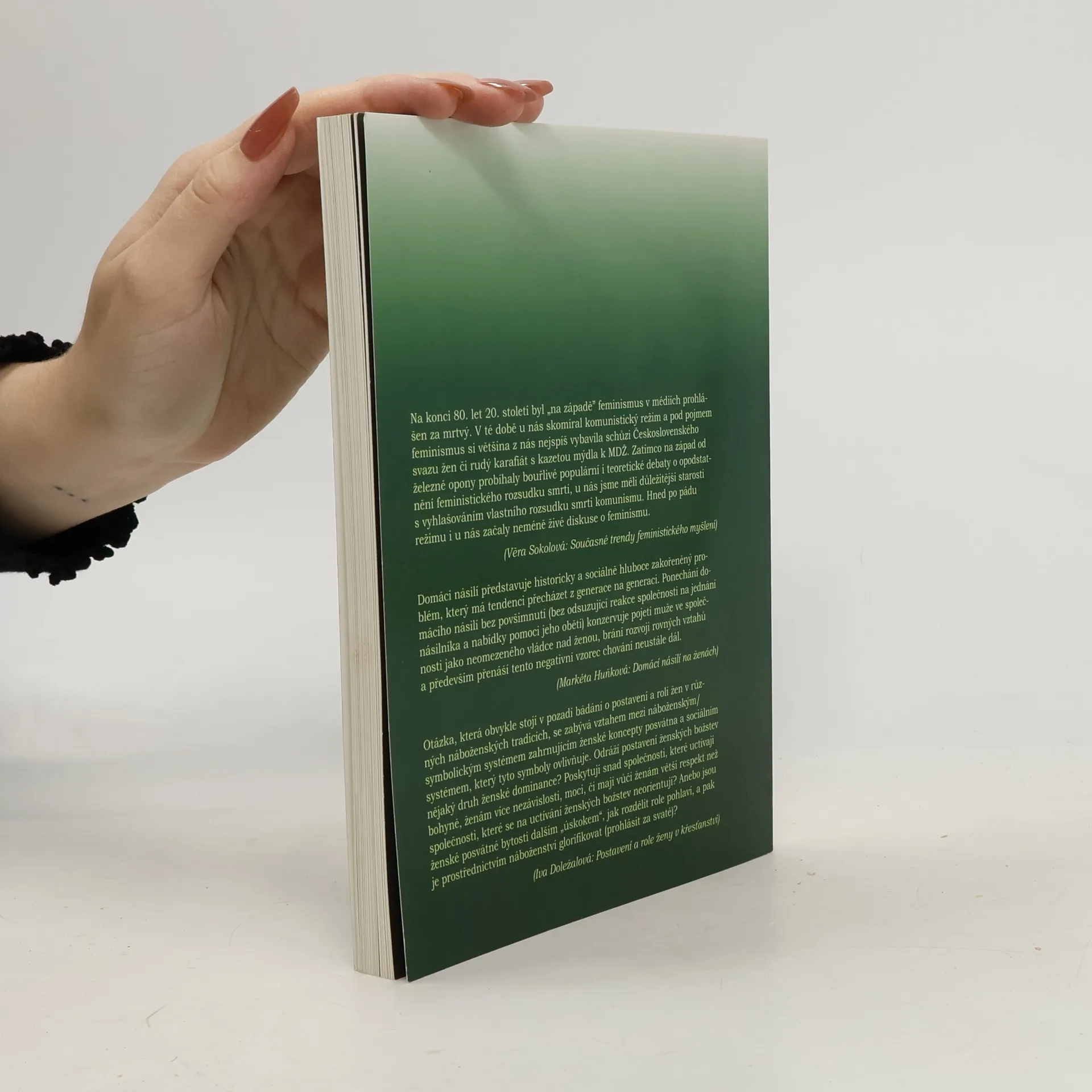 V této knize naleznete deset kapitol s tematikou feminismu, které se týkají historie a současnosti tohoto hnutí, ale i proměnami role matky a otce. Dále se zabývá gay a lesbickou tematikou z hlediska partneského soužití. Vydávají NESEHNUTÍ - nezávislé ekologické hnutí, které se angažuje v pomoci řešení problémů v oblasti lidských práv, životního prostředí a práv zvířat.