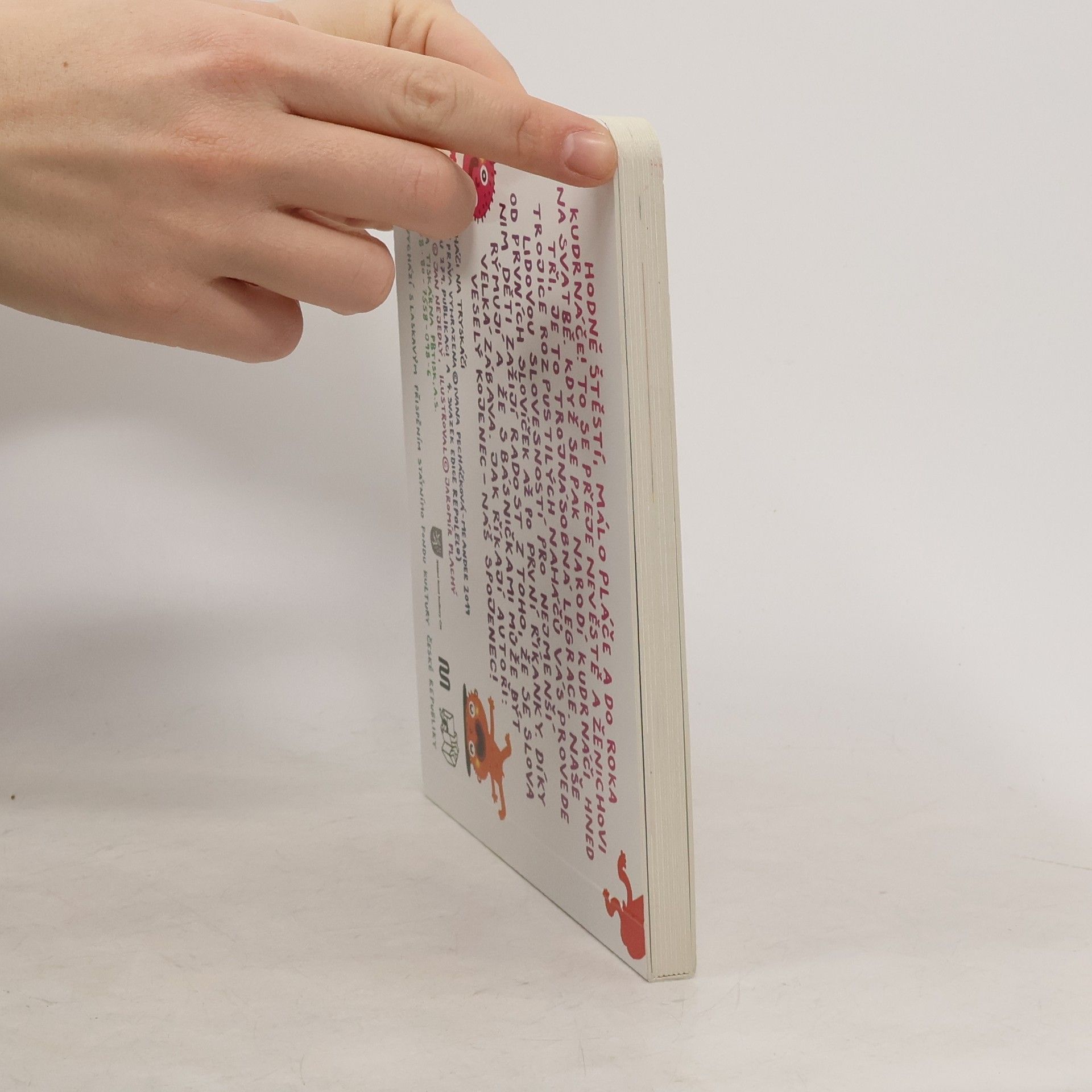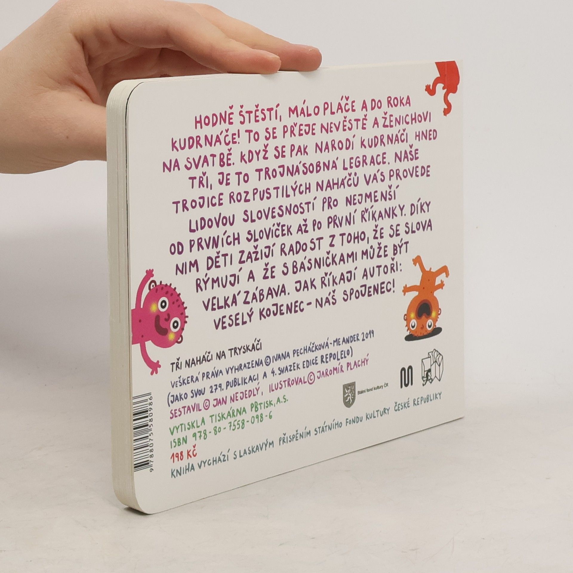 Hodně štěstí, málo pláče a do roka kudrnáče! To se přeje nevěstě a ženichovi na svatbě. Když se pak narodí kudrnáči hned tři, je to trojnásobná legrace.Naše trojice rozpustilých naháčů vás provede lidovou slovesností pro nejmenší. Od prvních slovíček až po první říkanky, díky nimž děti zažijí radost z toho, že se slova rýmují. A že s básničkami může být velká zábava. Jak říkají autoři: Veselý kojenec – náš spojenec! Haló, haló, co se stalo? Miminko se pokakalo!