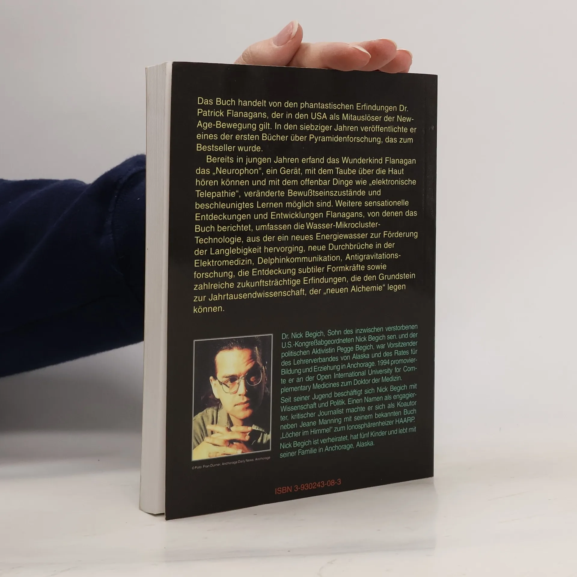 Das Buch handelt von den phantastischen Erfindungen Dr. Patrick Flanagans, einem der Väter der New-Age-Bewegung. Bereits in jungen Jahren erfang das Wunderkind Flanagan das „Neurophon“, ein Gerät, mit dem Taube über die Haut hören können und mit dem offenbar Dinge wie „elektronische Telepathie“, veränderte Bewußtseinszustände und beschleunigtes Lernen möglich sind. Weitere sensationelle Entdeckungen und Entwicklungen Flanagans umfassen die Wasser-Mikrokluster-Technologie, neue Durchbrüche in der Elektromedizin, telepathische Kommunikation mit Delphinen, Antigravitationsforschung, die Entdeckung subtiler Formkräfte sowie zahlreicher zukunftsträchtiger Erfindungen, die den Grundstein zur Jahrtausendwissenschaft, der „neuen Alchemie“ legen können.