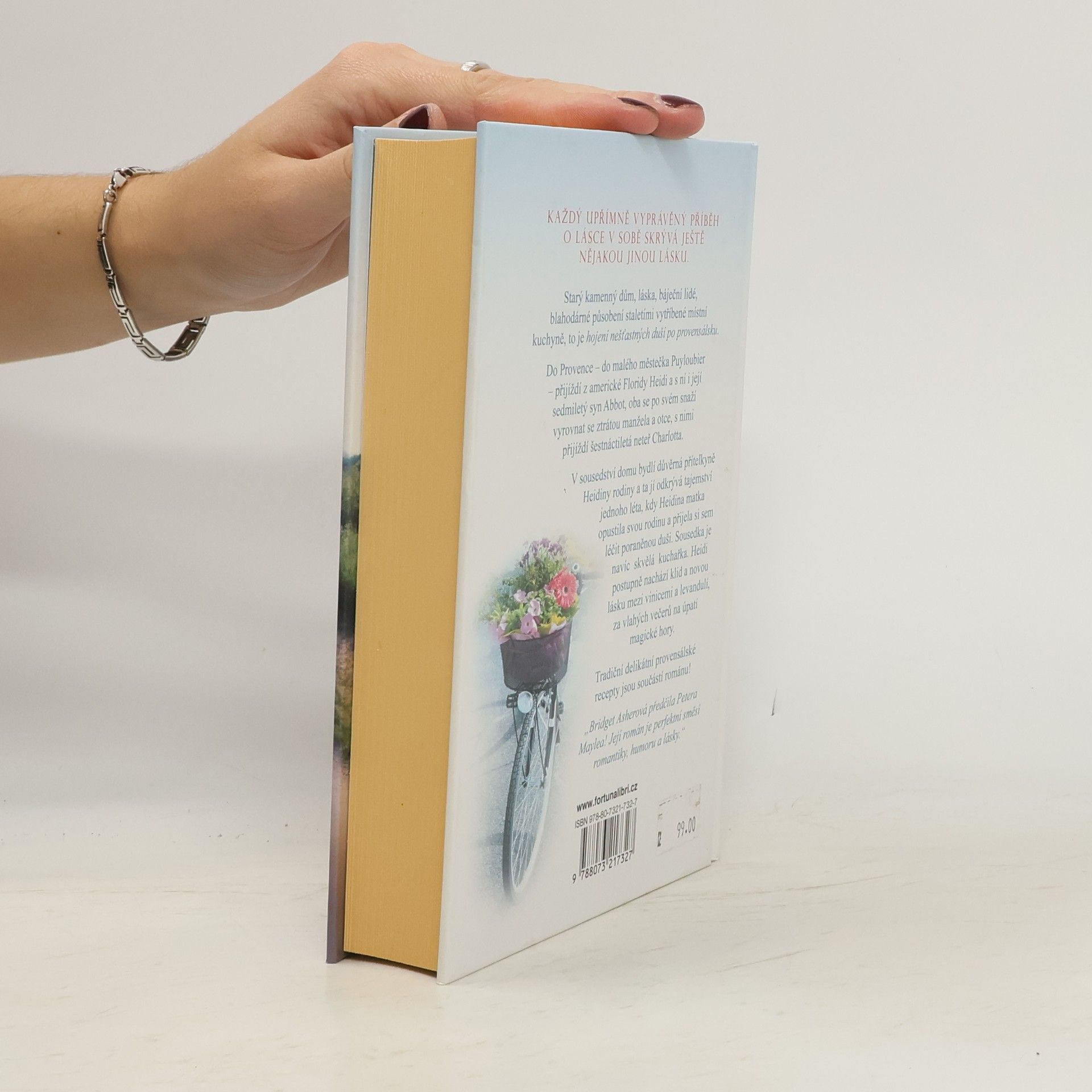 Starý kamenný dům, láska, báječní lidé, blahodárné působení staletími vytříbené místní kuchyně, to je hojení nešťastných duší po provensálsku. Do Provence – do malého městečka Puyloubier – přijíždí z americké Floridy Heidi a s ní i její sedmiletý syn Abbot, oba se po svém snaží vyrovnat se ztrátou manžela a otce, s nimi přijíždí šestnáctiletá neteř Charlotta. V sousedství domu bydlí důvěrná přítelkyně Heidiny rodiny a ta jí odkrývá tajemství jednoho léta, kdy Heidina matka opustila svou rodinu a přijela si sem léčit svou poraněnou duši. Sousedka je navíc skvělá kuchařka. Heidi postupně nachází klid a novou lásku mezi vinicemi, levandulí, za vlahých večerů na úpatí magické hory. Tradiční delikátní provensálské recepty jsou součástí románu!