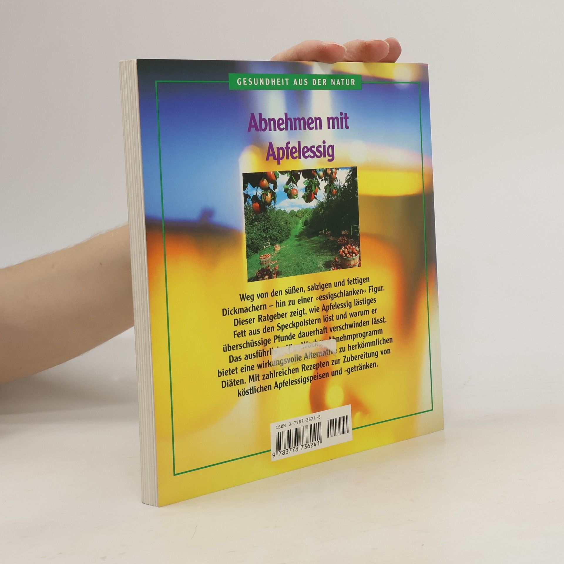 Weg von den süßen, salzigen und fettigen Dickmachern - hin zu einer "essigschlanken" Figur. Dieser Ratgeber zeigt, wie Apfelessig lästiges Fett aus den Speckpolstern löst und warum er überschüssige Pfunde dauerhaft verschwinden läßt. Das ausführliche Vier-Wochen-Abnehmprogramm bietet eine wirkungsvolle Alternative zu herkömmlichen Diäten. Mit zahlreichen Rezepten zur Zubereitung von köstlichen Apfelessigspeisen und -getränken.
