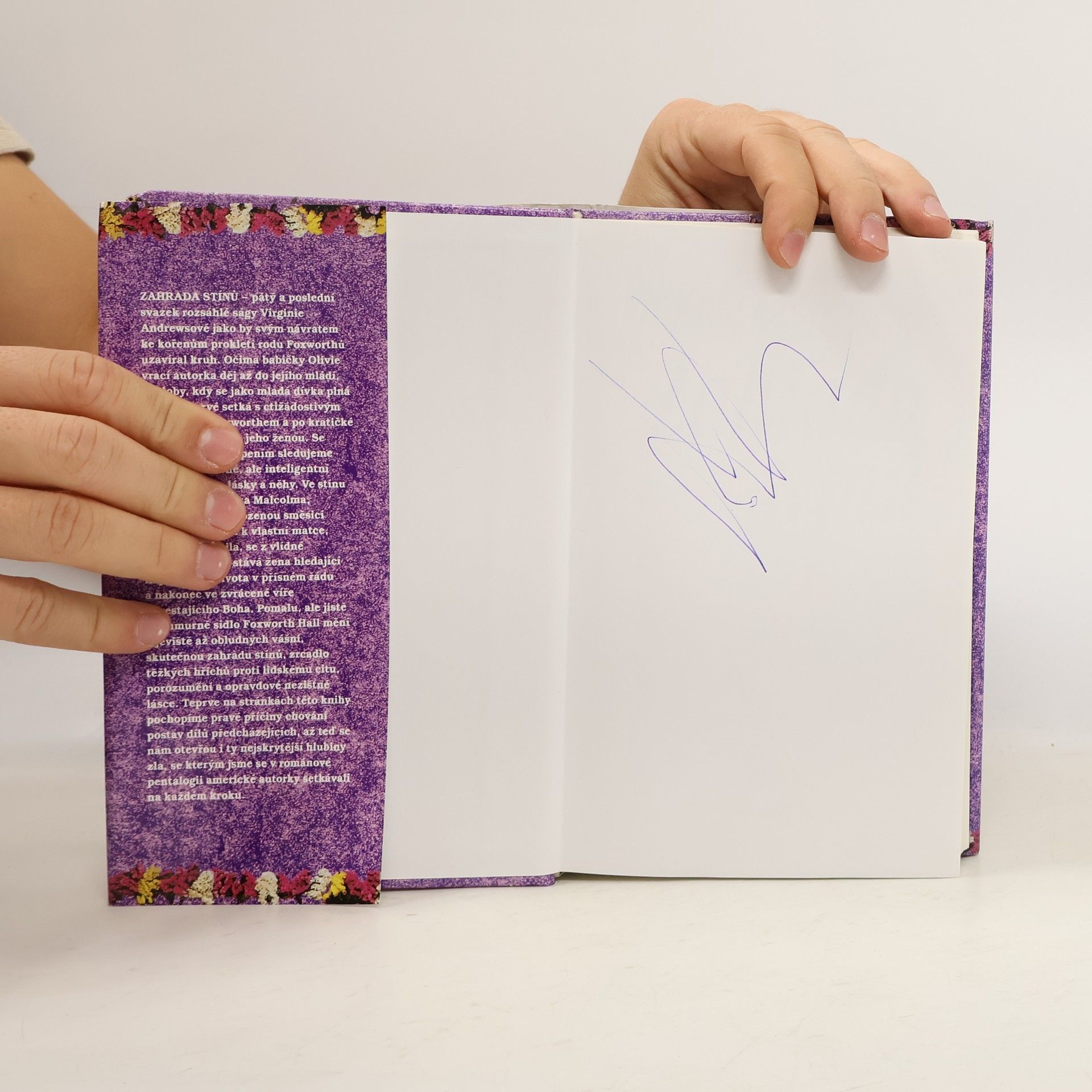 Pentalogie: Květy z půdy, Lístky ve větru, Vykoupení ohněm, Setba minulosti, Zahrada stínů Pátý a poslední svazek rozsáhlé ságy jako by svým návratem ke kořenům prokletí rodu Foxworthů uzavíral kruh. Očima babičky Olivie vrací autorka děj až do jejího mládí, do doby, kdy se jako mladá dívka plná ideálů poprvé setká se ctižádostivým Malcolmem.