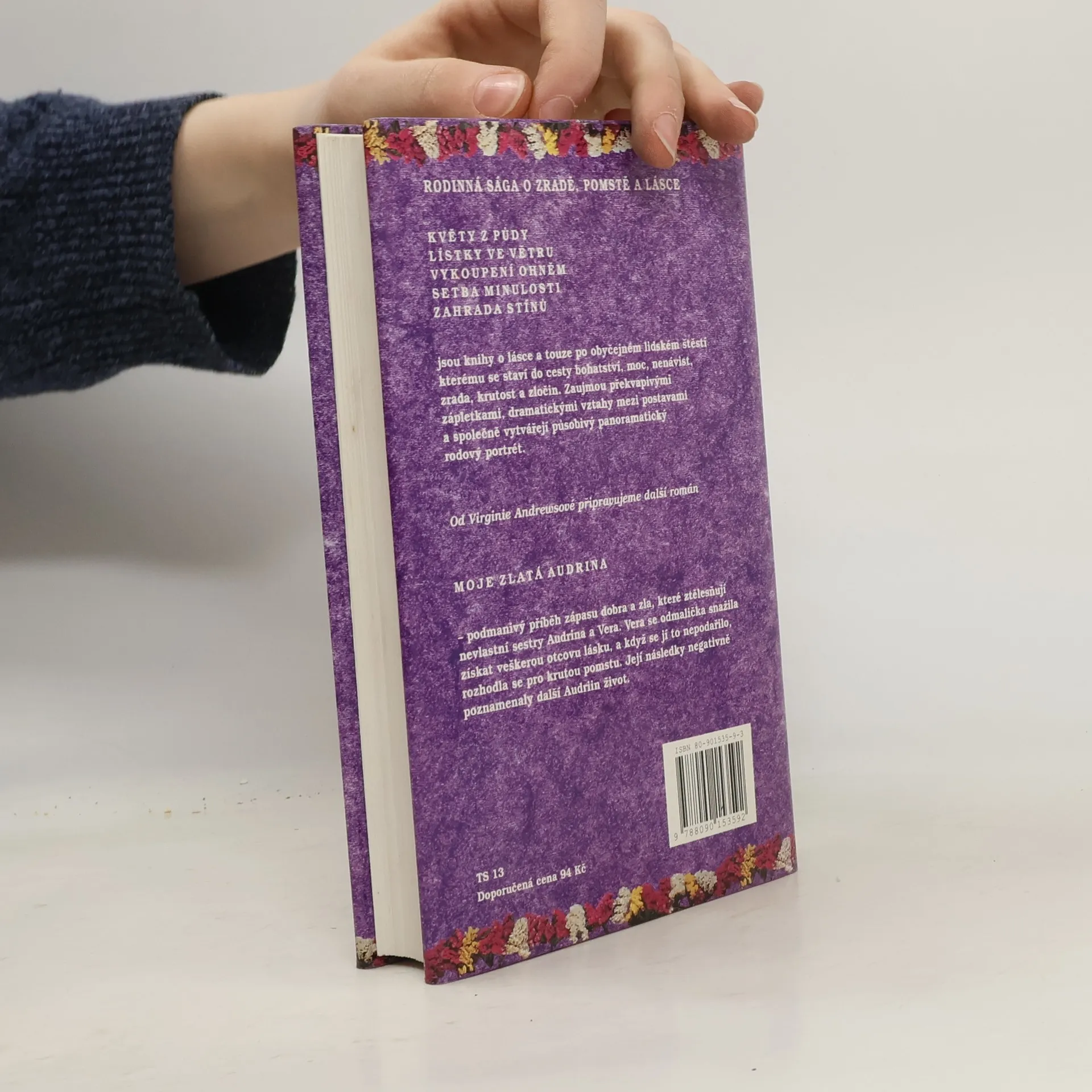 Pentalogie: Květy z půdy, Lístky ve větru, Vykoupení ohněm, Setba minulosti, Zahrada stínů Pátý a poslední svazek rozsáhlé ságy jako by svým návratem ke kořenům prokletí rodu Foxworthů uzavíral kruh. Očima babičky Olivie vrací autorka děj až do jejího mládí, do doby, kdy se jako mladá dívka plná ideálů poprvé setká se ctižádostivým Malcolmem.... celý text
