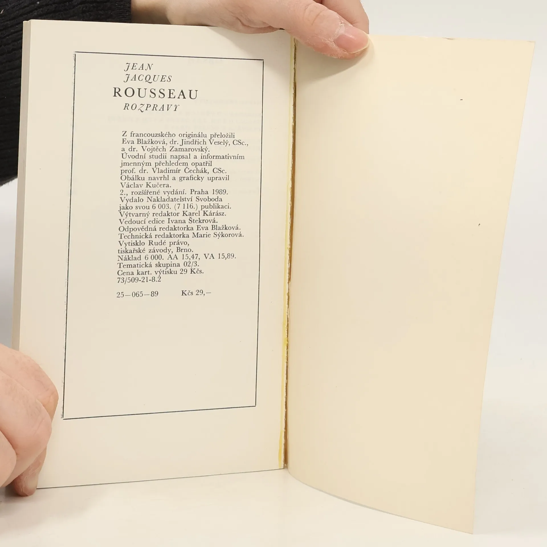 Rozpravy, Vladimír Čechák, Vojtěch Zamarovský, Jindřich Veselý, Eva Blažková, Jean Jacques Rousseau