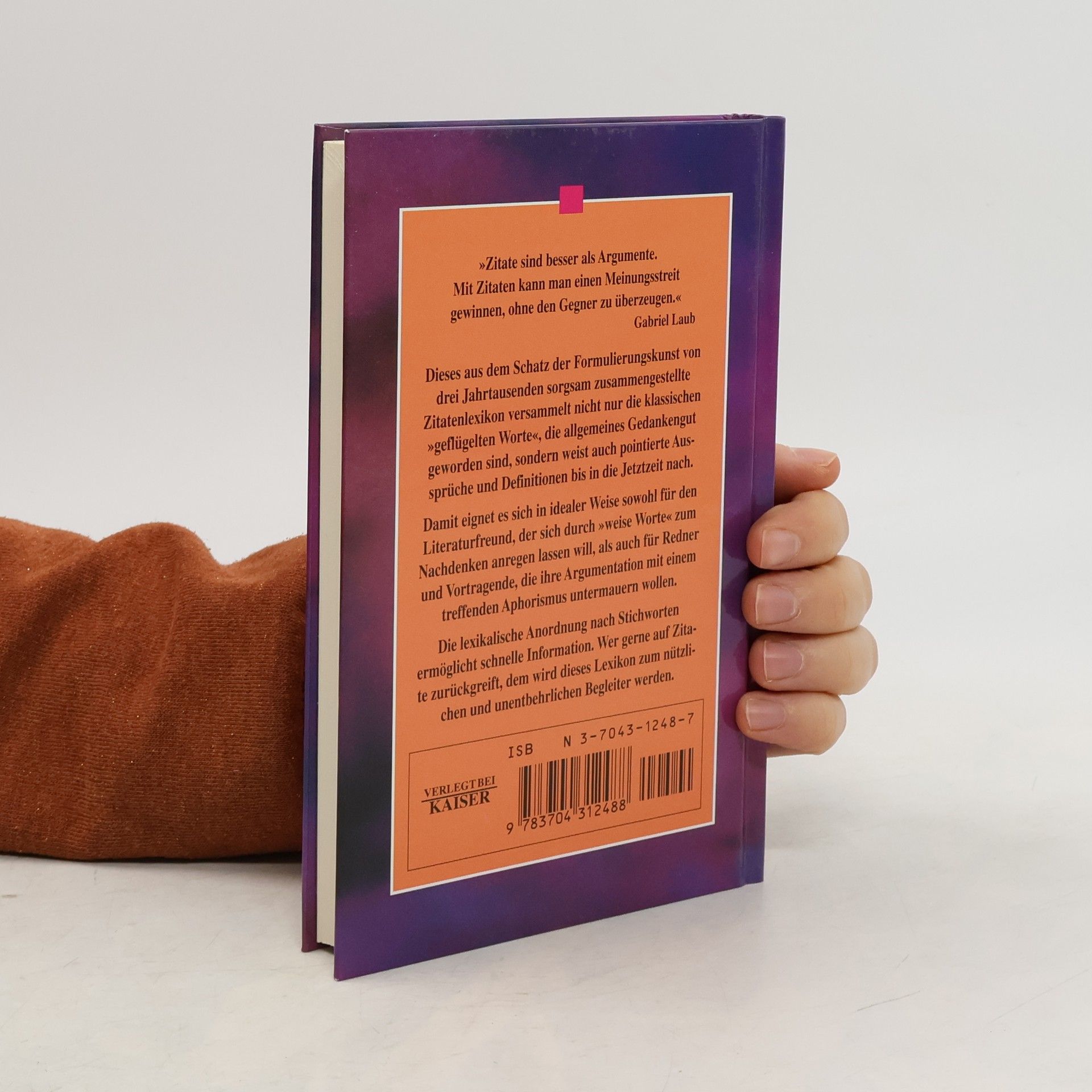 Dieses aus dem Schatz der Formulierungskunst von drei Jahrtausenden sorgsam zusammengestellte Zitatenlexikon versammelt nicht nur die klassischen “geflügelten Worte”, die allgemeines Gedankengut geworden sind, sondern weist auch pointierte Aussprüche und Definitionen bis in die Jetztzeit nach. Damit eignet es sich in idealer Weise sowohl für den Literaturfreund, der sich durch “weise Worte” zum Nachdenken anregen lassen will, als auch für Redner und Vortragende, die ihre Argumentation mit einem treffenden Aphorismus untermauern wollen. Die lexikalische Anordnung nach Stichworten ermöglicht schnelle Information. Wer gerne auf Zitate zurückgreift, dem wird dieses Lexikon zum nützlichen und unentbehrlichen Begleiter werden.