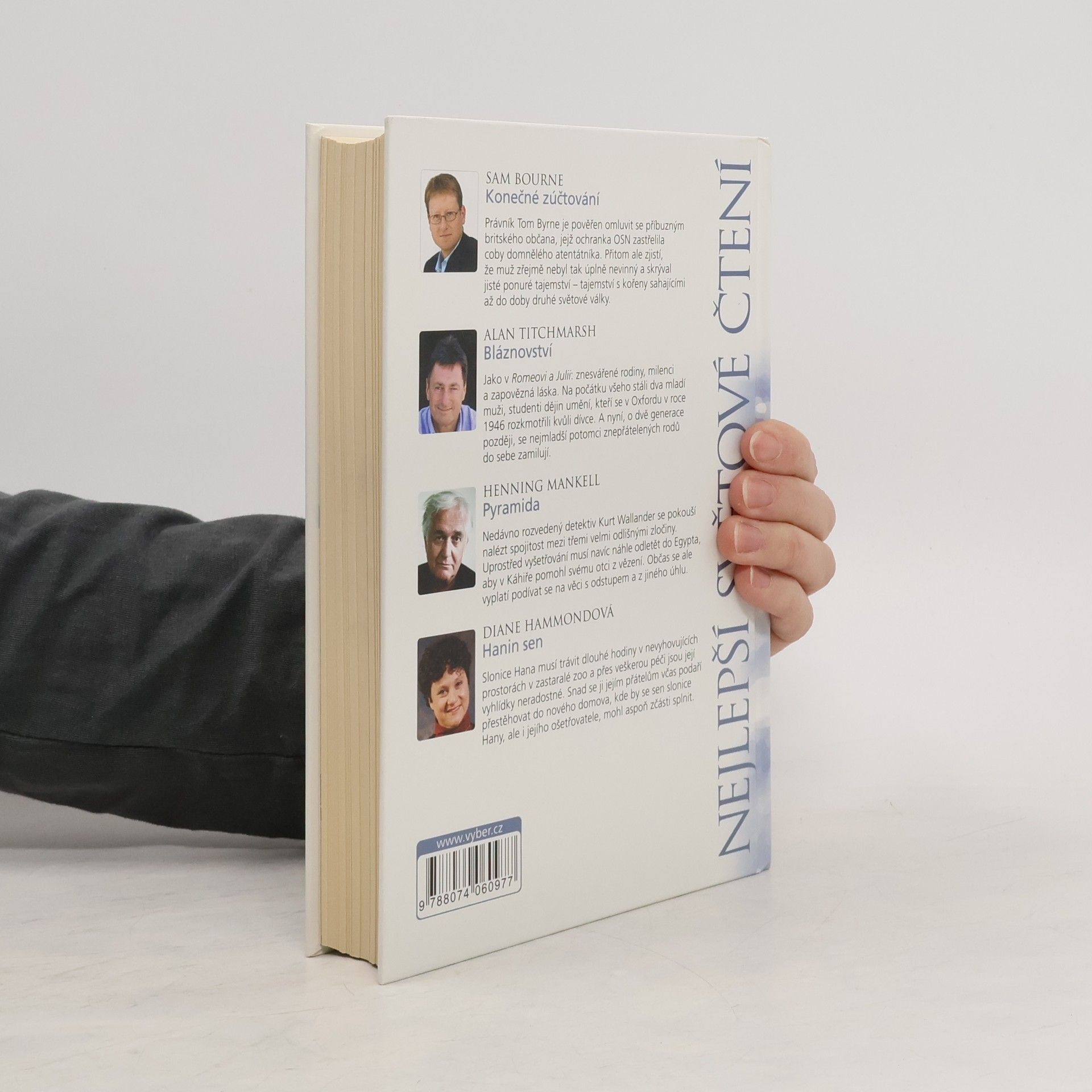 1) Sam Bourne: Konečné zúčtování - Právník Tom Byrne je pověřen omluvit se příbuzným britského občana, jejž ochranka OSN zastřelila jako domnělého atentátníka. Přitom ale zjistí, že muž zřejmě nebyl tak úplně nevinný a skrýval jisté ponuré tajemství – tajemství s kořeny sahajícími až do doby druhé světové války. 2) Alan Titchmarsh: Bláznovství - Jako v Romeovi a Julii: znesvářené rodiny, milenci a zapovězená láska. Na počátku všeho stáli dva mladí muži, studenti dějin umění, kteří se v Oxfordu v roce 1946 rozkmotřili kvůli dívce. A nyní, o dvě generace později, se nejmladší potomci znepřátelených rodů do sebe zamilují. 3) Henning Mankell: Pyramida - Nedávno rozvedený detektiv Kurt Wallander se pokouší nalézt spojitost mezi třemi velmi odlišnými zločiny. Uprostřed vyšetřování musí navíc náhle odletět do Egypta, aby v Káhiře pomohl svému otci z vězení. Občas se ale vyplatí podívat se na věci s odstupem a z jiného úhlu. 4) Diane Hammond: Hanin sen - Slonice Hana musí trávit dlouhé hodiny v nevyhovujících prostorách v zastaralé zoo a přes veškerou péči jsou její vyhlídky neradostné. Snad se ji jejím přátelům včas podaří přestěhovat do nového domova, kde by se sen slonice Hany, ale i jejího ošetřovatele, mohl aspoň zčásti splnit.
