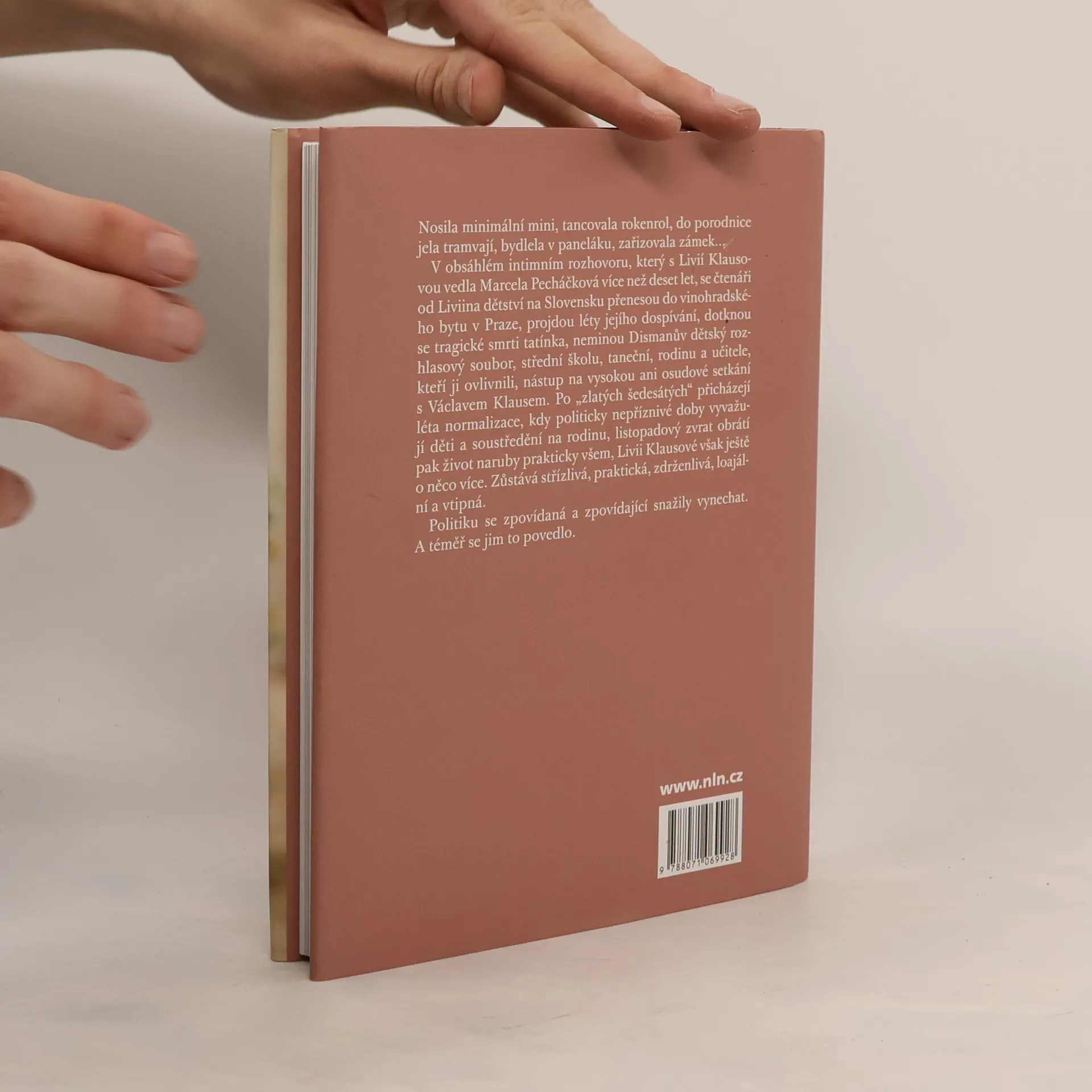 V obsáhlém intimním rozhovoru Livia Klausová vypráví, jak dabovala Červenou karkulku, o tragické smrti tatínka, když jí bylo patnáct let a nejmladšímu z pěti sourozenců teprve tři, o rafinovaném termínu svatby, o tom, jak sama jela tramvají do porodnice, o vinohradské garsonce, kam si přivezli prvorozeného syna a místo radosti měli starost o jeho zdraví. Vzpomíná, jak budovali chalupu, zařizovali panelák, prožívali totalitu, jak se stala manželkou ministra, premiéra a prezidenta. Autorka a Livia Klausová se předem dohodly, že v rozhovoru vynechají politiku. A téměř to dodržely. Knihu doprovází sedmdesát unikátních fotografií z rodinného alba.