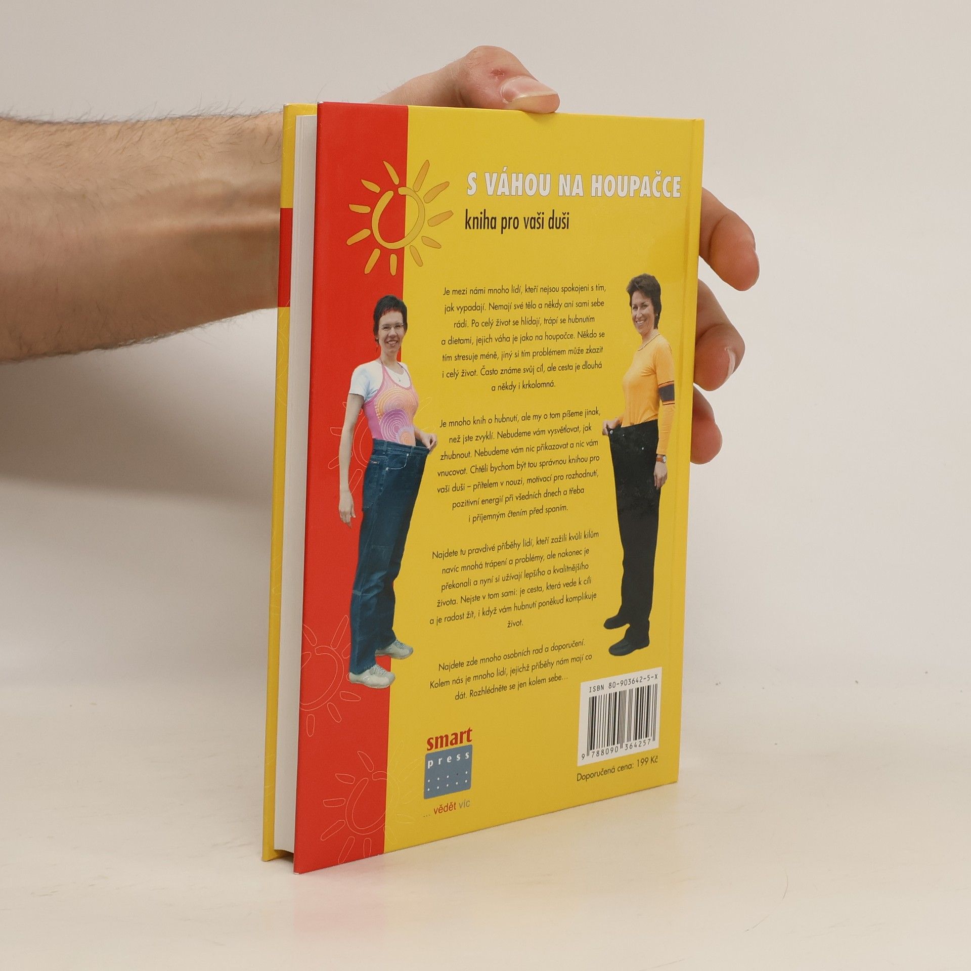 Snažíte se stále hubnout? Kalorie vám ničí život? Nejste na to sami, jak uvidíte v našich příbězích. Kniha je poučením, motivací, ale také pro potěchu duše, pro čtení před spaním. Autorky, které mají samy zkušenosti s hubnutím, vyzpovídaly mnoho žen i mužů různých věkových kategorií, kteří se trápili stejným problémem přebytečnými tuky a nespokojeností se svou postavou. V knize jsou zahrnuty pravdivé příběhy těch, kteří zažili kvůli kilům navíc mnohá utrpení a starosti, ale nakonec je překonali a nyní si užívají lepšího a kvalitnějšího života. Nejsme v tom sami: je cesta, která vede k cíli a je radost žít, i když nám hubnutí poněkud komplikuje život. O edici Kniha pro vaši duši Knih o hubnutí je hodně, ale tato je jiná nic nezakazuje a nic nevnucuje. Je to kniha pro duši, přítel v nouzi, motivace pro rozhodnutí, pozitivní energie při všedních dnech a třeba i příjemné čtením před spaním. Nová edice Kniha pro vaši duši řeší problém, ne však jako populárně-naučná příručka. Obsahuje konkrétní příběhy lidí, kteří se potýkali s podobným problémem a překonali jej, ať již s úspěšně či ne.