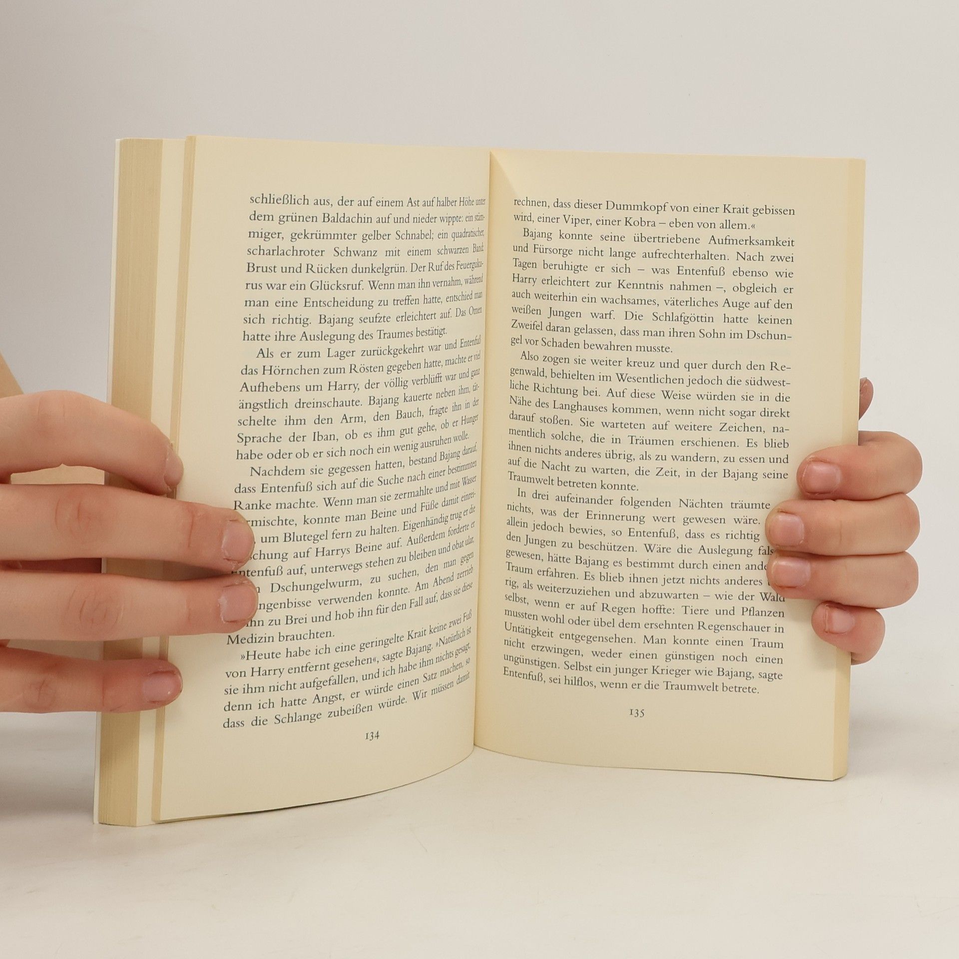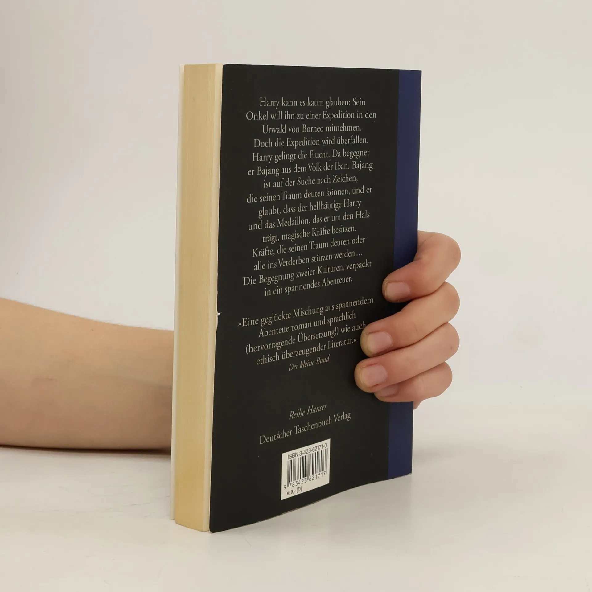 Harry kann es kaum glauben, sein Onkel will ihn zu einer Militärexpedition in den Urwald von Borneo mitnehmen. Der geheimnisvolle Regenwald, Sümpfe, Kobras und die Gerüchte über die Kopfjäger faszinieren ihn seit langem. Zur gleichen Zeit bricht in Borneo auch Bajang aus dem Volk der Iban zu einer Reise auf. Er ist auf der Suche nach Zeichen, die seinen Traum deuten können. Das Mädchen mit dem verkrüppelten Fuß soll ihm den Weg weisen. Für sein Volk sind Träume voller Weisheit. Sie zu missachten bedeutet den Tod. Die Militärexpedition wird überfallen. Harry gelingt die Flucht. Doch er wird verfolgt. Da kreuzen sich die Wege von Bajang und Harry. Harry weiß, dass nur Bajang und das Mädchen ihm jetzt noch helfen können, und Bajang glaubt, dass der hellhäutige Harry und das Medaillon, das er um den Hals trägt, magische Kräfte besitzen, Kräfte, die seinen Traum deuten oder alle ins Verderben stürzen werden ...