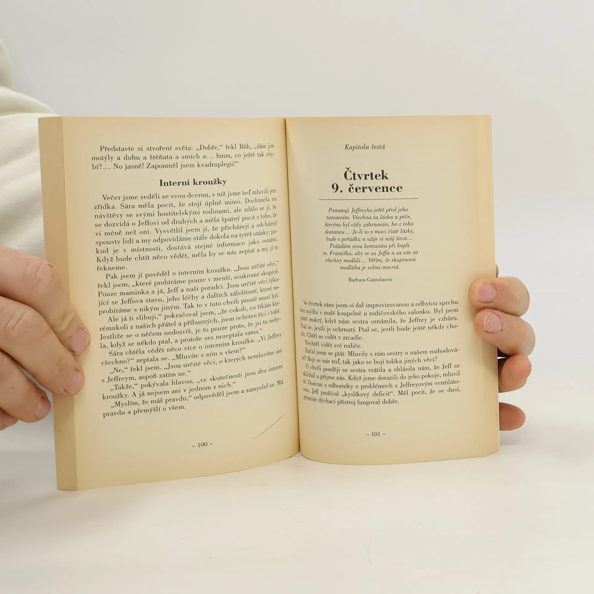 Kniha přibližuje osud zcela ochrnutého mladého chlapce a jeho rodiny. Jeffrey skočil do bazénu, narazil si páteř a celý ochrnul. Kniha je vlastně deníkem jeho otce. Seznamuje nás s událostmi několika následujících dnů a přibližuje otcovy pocity a myšlenky. Radost z toho, že chlapce včas z bazénu vytáhl, a tím mu zachránil život, brzy střídají otázky, jestli to bylo to nejlepší, co pro svého syna udělal. Je tento způsob života skutečně lepší než smrt? Jak se syn vyrovná se svým postižením? Jak se s tím vyrovnají jeho rodiče? Příběh tohoto chlapce může hodně pomoci i dalším stejně postiženým pacientům a jejich příbuzným, minimálně zjištěním, že podobné otázky si nekladou sami