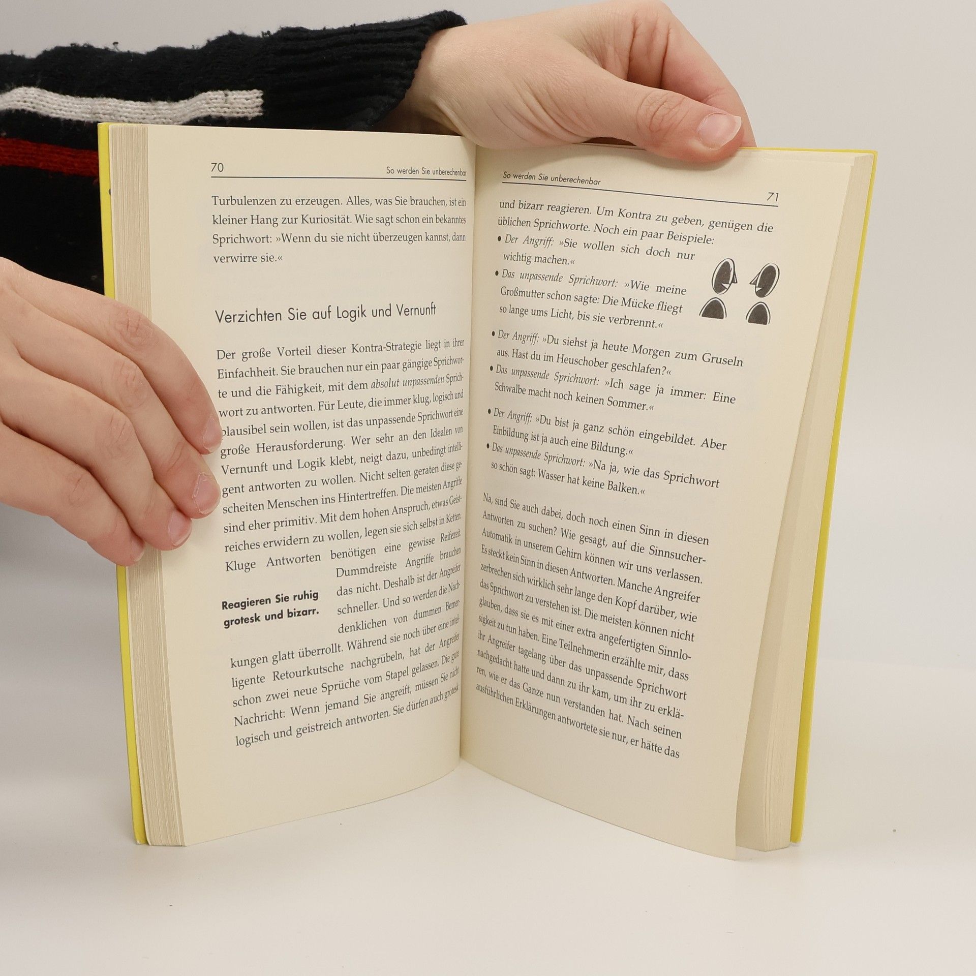 Ein Angriff mit Worten kann ebenso verletzend sein wie ein Schlag ins Gesicht. Die meisten Menschen sind dann erst einmal sprachlos, später fällt ihnen vielleicht ein, was sie hätten sagen können. Oder sie schießen spontan zurück, oft mit einer noch härteren Retourkutsche. Dabei kommen sie schnell in Teufels Küche, denn aus einer dummen Bemerkung entwickelt sich leicht ein handfester Konflikt. Barbara Berckhan stellt in ihrem neuen Buch 12 Strategien vor, wie wir in alltäglichen Situationen etwas intelligenter Kontra geben können. Sie erfahren u.a., wie Sie Angriffe einfach an sich abprallen lassen können, wie Sie den Angreifer verwirren oder ins Leere laufen lassen können, wie sie unsachliche Kritik entgiften können. Zusätzlich enthält das Buch ein Trainingsprogramm, mit dem Sie Ihre persönliche Schlagfertigkeit verbessern werden.