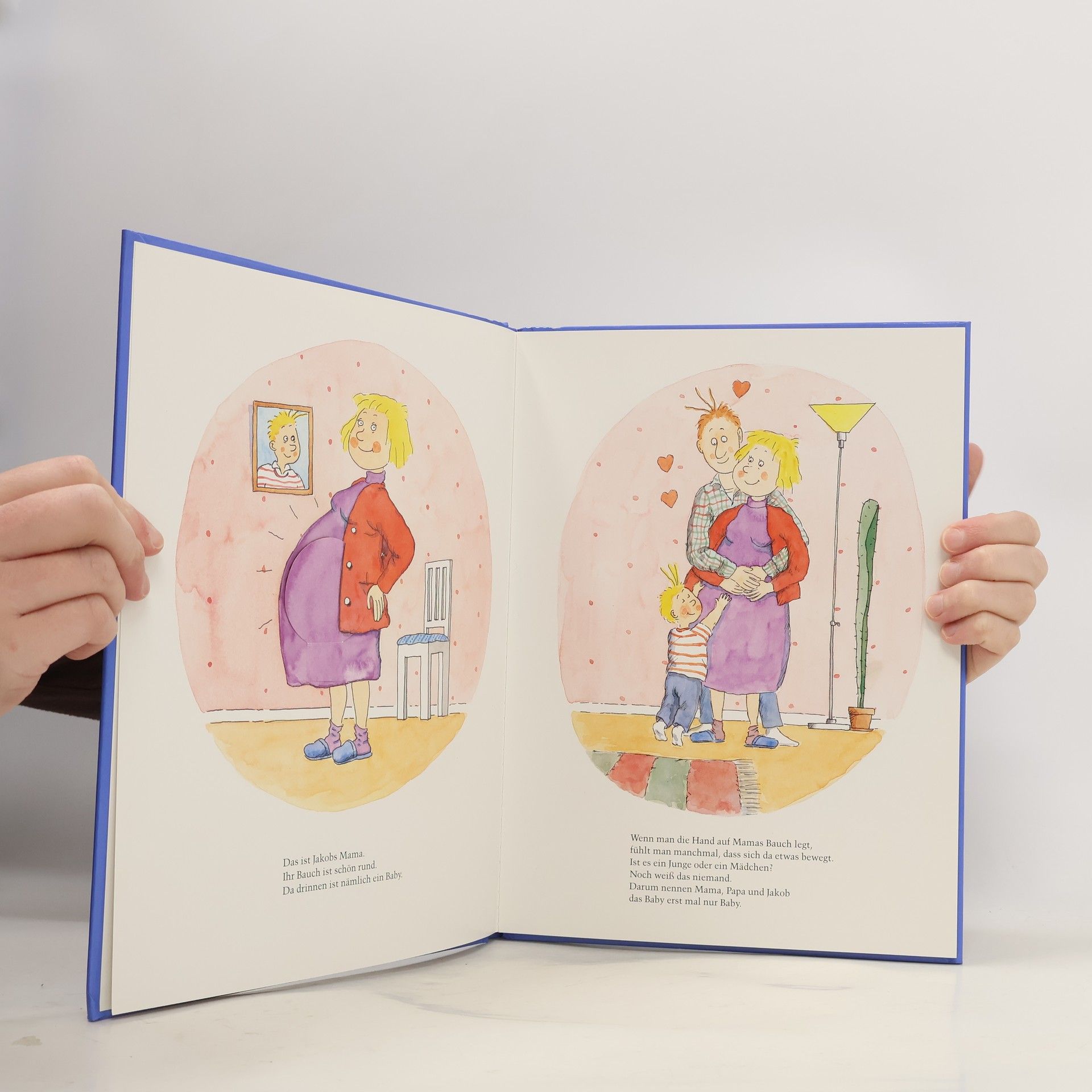 Ein höchst vergnügliches Bilderbuch für Familien, die sich auf das nächste Baby freuen. Mit Klappen zum Nachsehen, was das Baby gerade macht. Nachts, wenn Jakob zu Mama und Papa ins Bett krabbelt, beginnt ein großes Gerummel in Mamas Bauch. „Was treibt das Baby bloß um diese Zeit?“, fragt Papa. „Ist doch klar“, sagt Jakob. Jakob weiß nämlich immer, was das Baby gerade macht: Handstand, wenn Mama sich bücken muss, Schwimmübungen, wenn Mama zu viel trinkt, und natürlich Popcorn essen, wenn Mama das tut. Jakob kann sich sogar vorstellen, dass das Baby die Sommerwochen am Meer genießt.