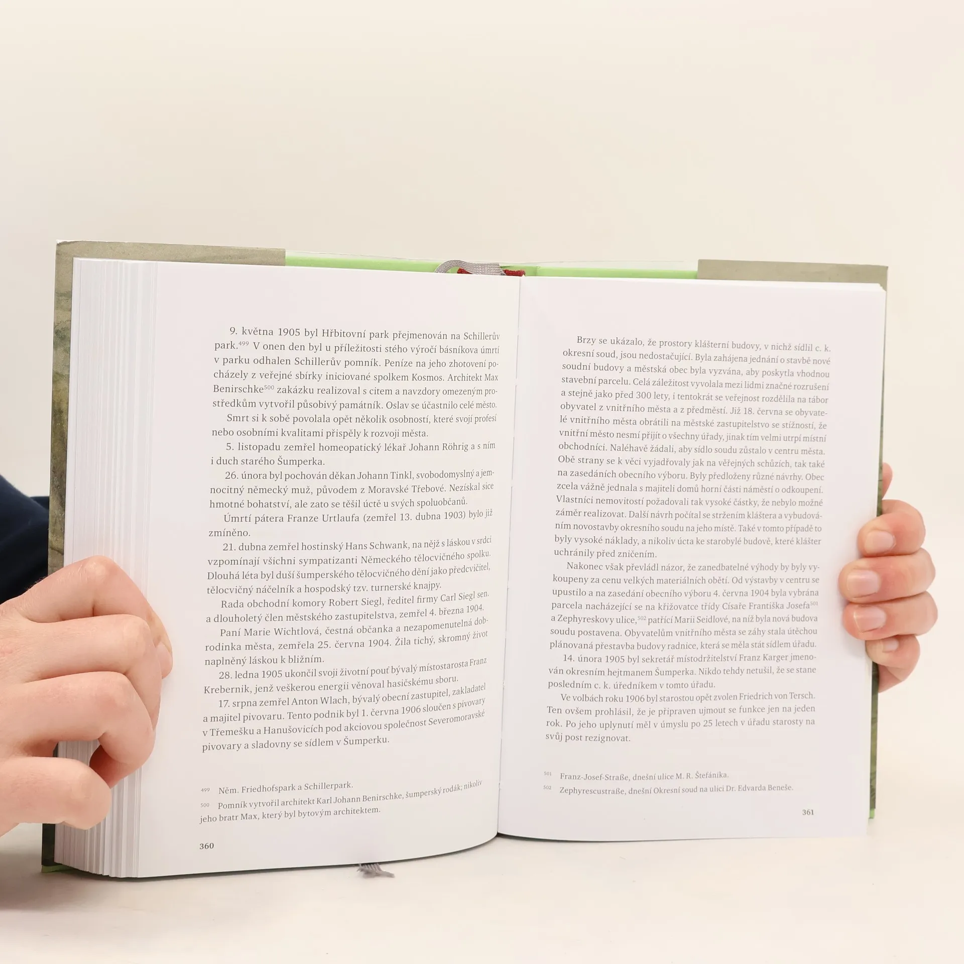 Dějiny města Šumperka (Geschichte der Stadt Mährisch- Schönberg) napsal šumperský rodák, německý regionální vlastivědný badatel Franz Harrer (1869–1951). Harrer byl členem místního muzejního spolku a rovněž inicioval vznik městského archivu. Studiem archivního materiálu i muzejních sbírek načerpal rozsáhlé znalosti z městské historie, jež zúročil v bohaté a cenné publicistické činnosti (1917–1944). Zapojil se také do výzkumu moravských a slezských rodů a zpracoval osudy téměř dvaceti šumperských rodin včetně své vlastní. Jako naprostou většinu šumperských Němců postihl i jeho v roce 1945 poválečný odsun. Poté, co se usadil v bavorském Weissenburgu, publikoval čas od času v místním časopise Mein Heimatbote články o rodném kraji. I když líčení počátků města Šumperka interpretoval v duchu Bretholzovy teorie o kontinuitě germánského osídlení v našich zemích, lze jeho knihu označit za pečlivé dílo regionální historiografie, zejména co se novověkých událostí týká.
