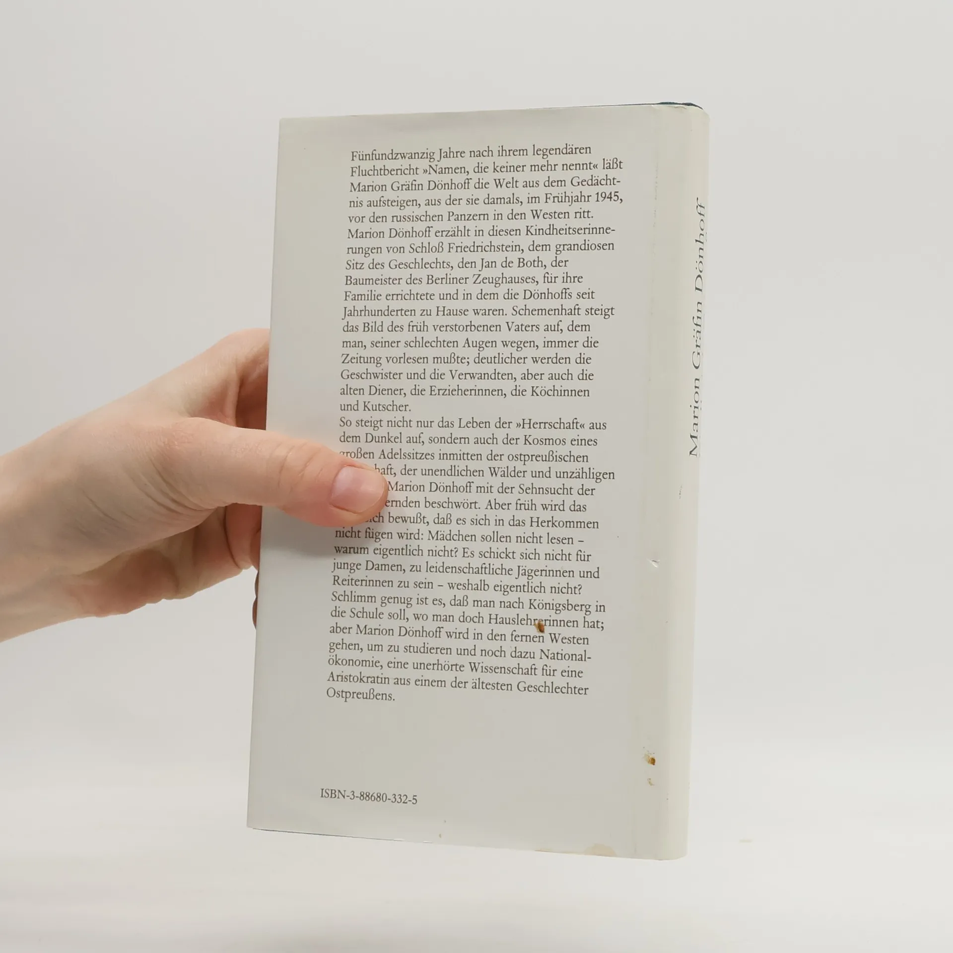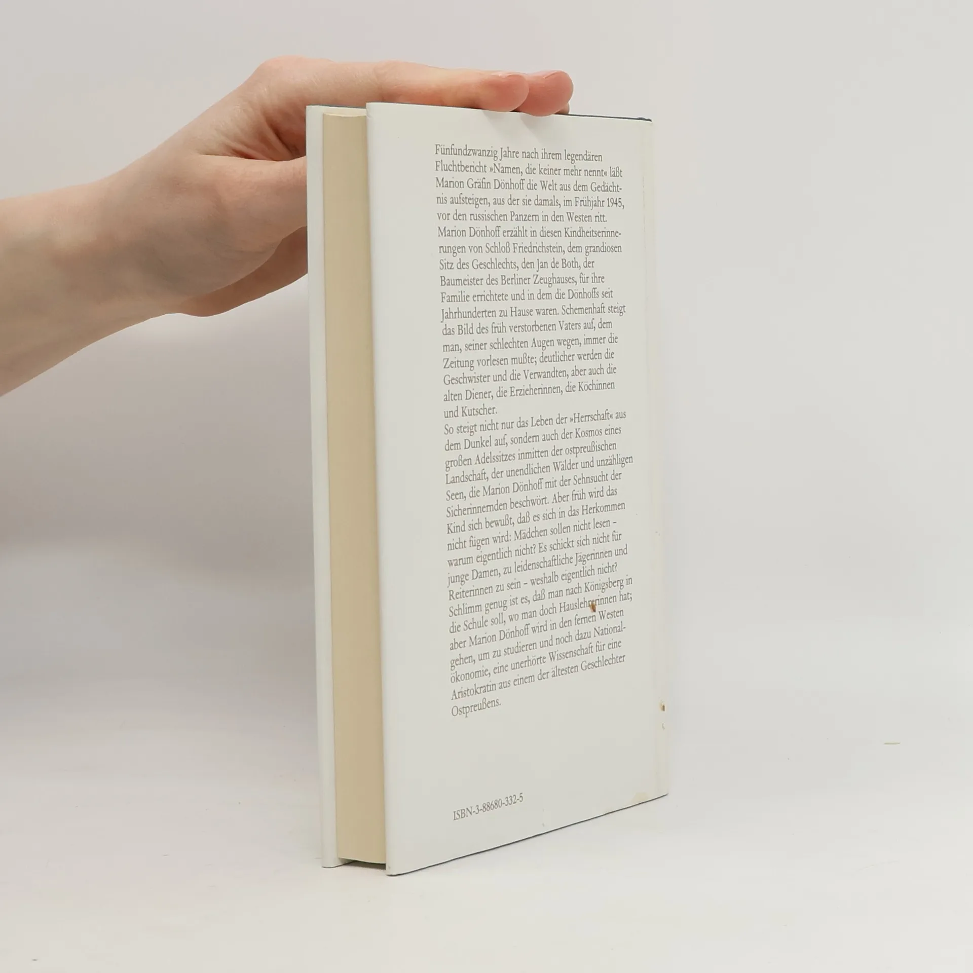 »Ihr Adel hat sich nicht aus ihrer Herkunft ergeben, sondern aus ihrem Willen und ihrer Haltung.« Helmut Schmidt über Marion Gräfin Dönhoff Marion Gräfin Dönhoffs Erinnerungen an ihre Kindheit und Jugend in Ostpreußen, an Elternhaus, Freunde und Vorfahren verbinden sich mit historischen Anekdoten zu einer bezaubernden Liebeserklärung an ihre Heimat. In ihren Kindheitserinnerungen an Ostpreußen läßt Marion Gräfin Dönhoff die Welt aus dem Gedächtnis aufsteigen, aus der sie im Frühjahr 1945 vor den sowjetischen Panzern in den Westen floh. Sie erzählt von Schloß Friedrichstein, in dem die Familie Dönhoff jahrhundertelang zu Hause waren. Nicht nur das herrschaftliche Leben auf dem Adelssitz, sondern auch die unverwechselbare Landschaft Ostpreußens mit ihren unendlichen Wäldern, ihren Seen und Alleen wird lebendig und greifbar. Eindrucksvoll erinnert sich Marion Dönhoff an ihren früh verstorbenen Vater, an ihre Geschwister, Verwandten und Freunde, aber auch an die alten Diener, die Erzieherinnen, Köchinnen und Kutscher. Sie entwirft ein lebendiges Bild ihrer Kindheit mit all ihren Freuden und Nöten, Widerständen und Zweifeln.