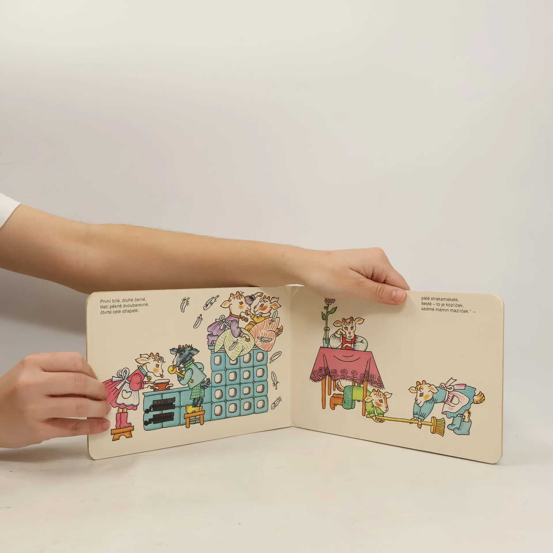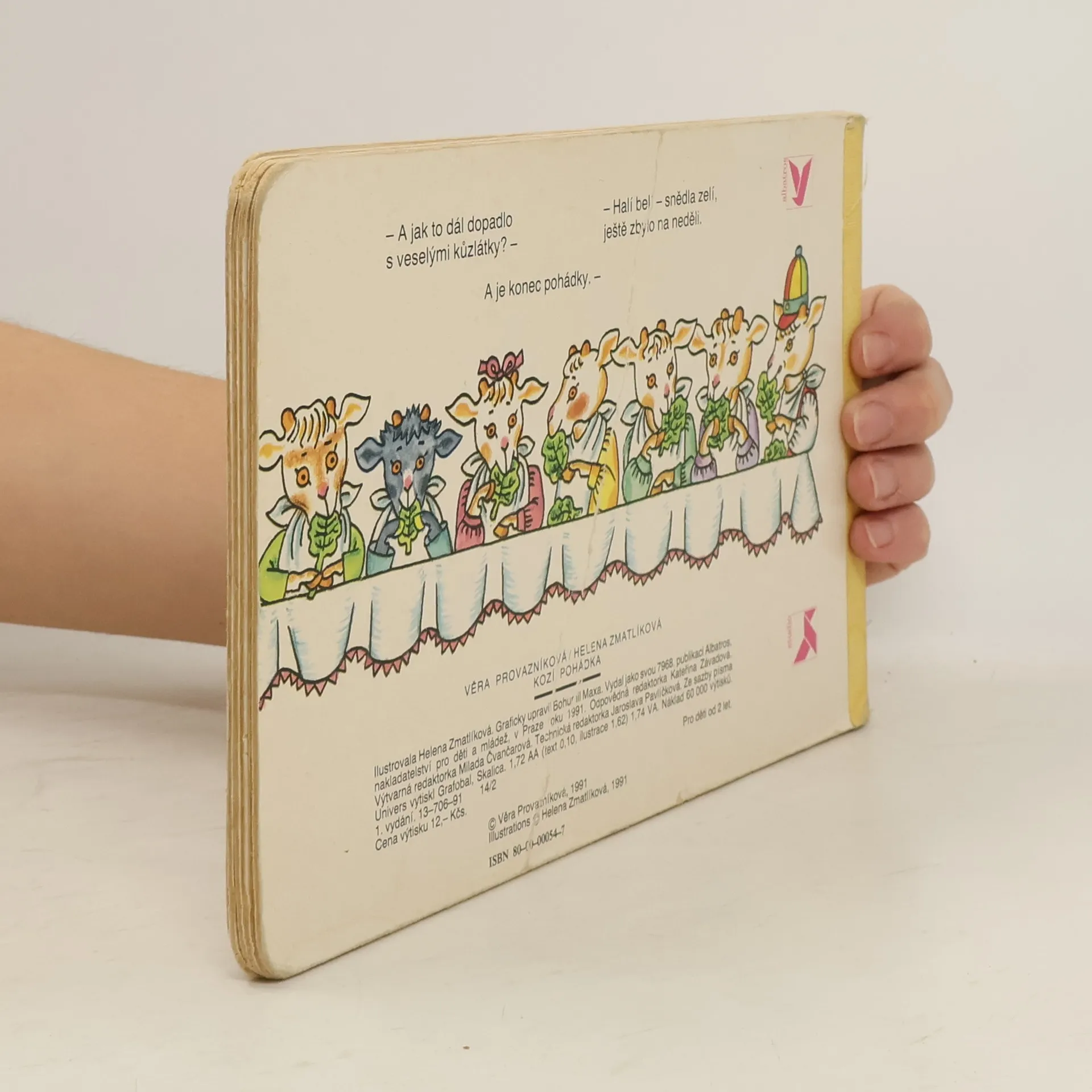Ilustrované leporelo se známým veršovaným příběhem o kůzlátkách a mlsném vlkovi. To jsem já, bradička bílá! Otevřete, kůzlátka milá. Nesu sladké zelíčko, tak otevřete maličko! - Těmito líbeznými slůvky vlk přemlouvá kůzlátka, aby mu otevřela, vyparáděný tak, že se musí děti smát, jak mu klobouk s pentlemi padne.Jedna z nejoblíbenějších dětských pohádek, kterou děti znají nazpaměť od nejútlejšího dětství. Verši doprovází Věra Provazníková. Ilustrovala Helena Zmatlíková.