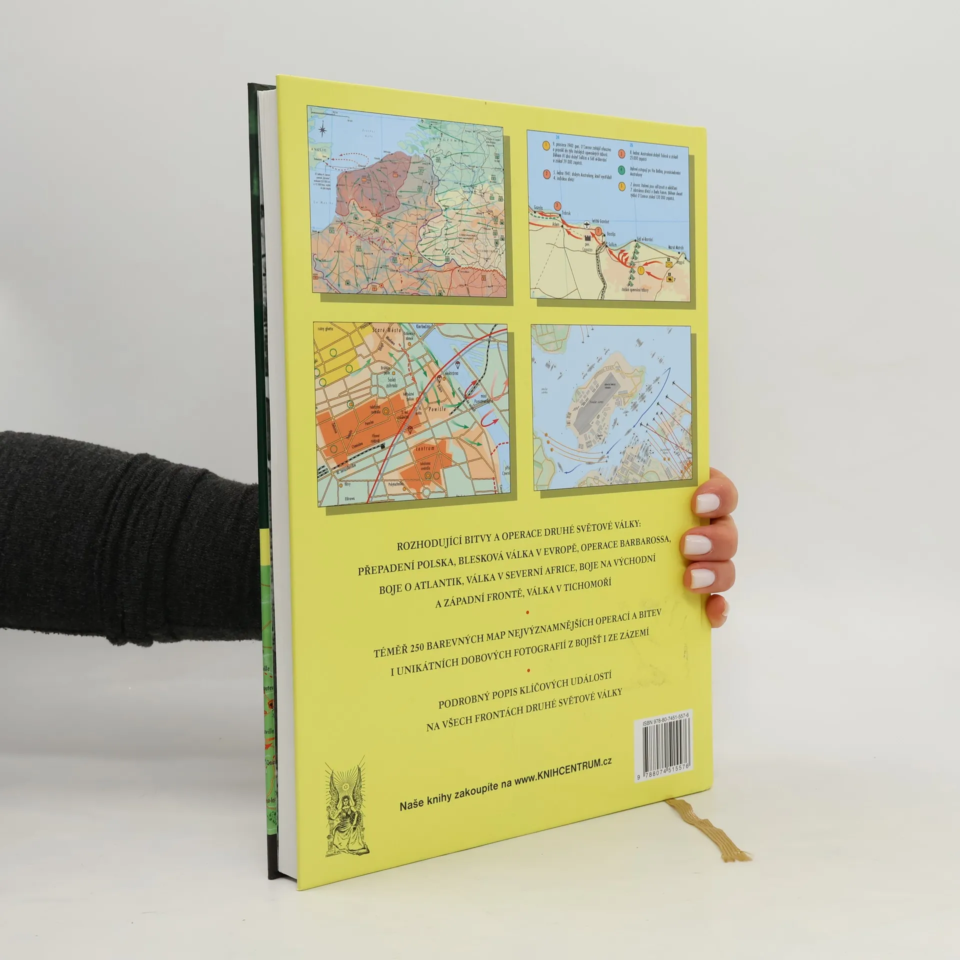 Atlas barevných map nejvýznamnějších operací a bitev doplňují dobové fotografie z bojišť 2. světové války.