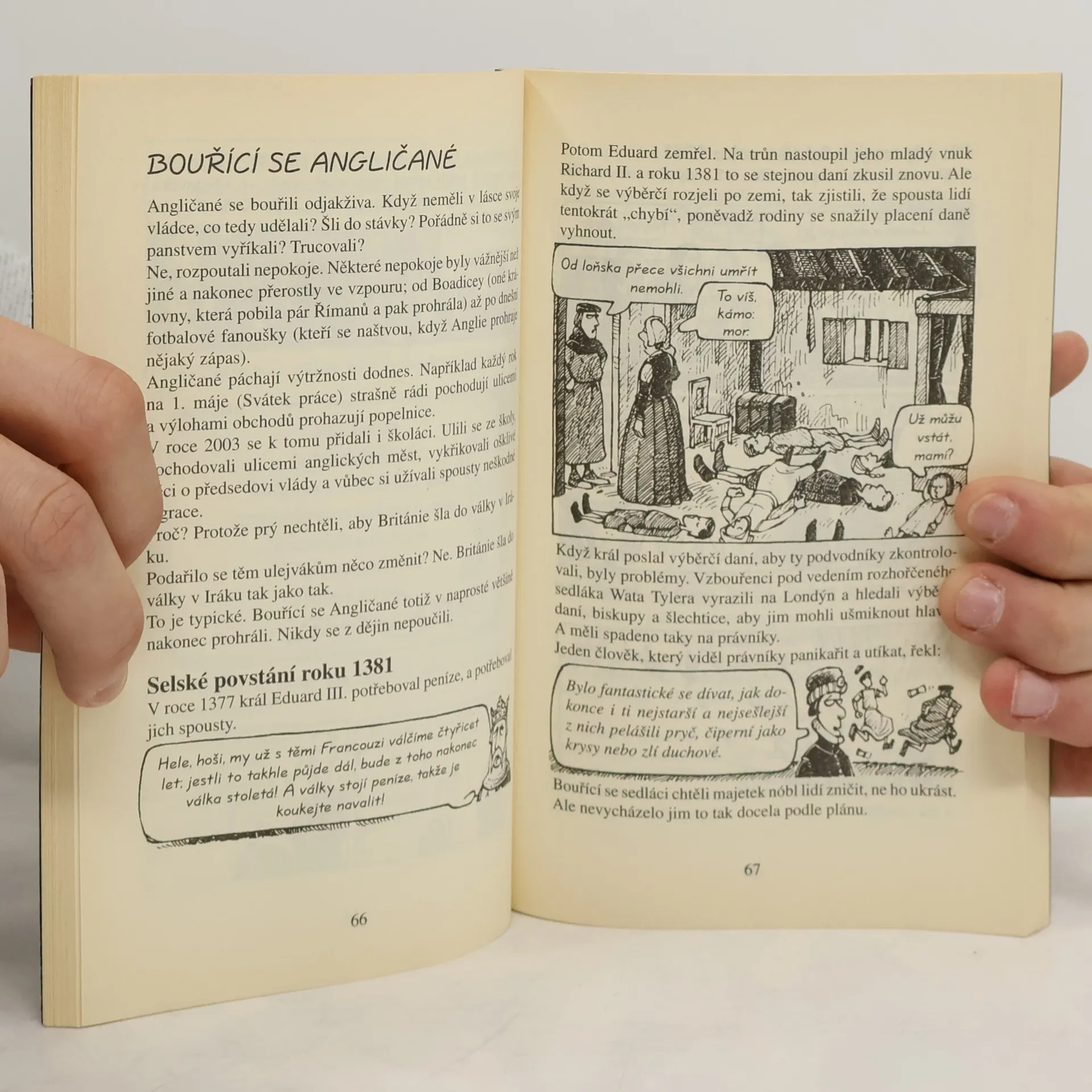 Přečtěte si hroznou pravdu o povstáních, vzpourách a nepokojích, které pomáhaly utvářet dnešní Anglii. A můžete si být jistí, že vám z toho bude pěkně nanic, ať už budete číst o krutých Keltech, nebo o příšerném 20. století. Dozvíte se například, který mnich se pokoušel štípnout ďábla do nosu kleštěmi, proč se ve středověku jedl holubí trus nebo kterého anglického krále obvinili z toho, že je vlkodlak. V této knize najdete úplně všechno, co má něco společného s Angličany - od moru přes požár až po občanskou válku nebo od rostbífu přes, rybu s hranolky až po šálek čaje. Přečtěte si o mizerných středověkých vládcích, objevte deset způsobů, jak se zabít ve viktoriánském uhelném dole a poznejte smutnou pravdu o rytíři Jiřím, kterého všichni Angličané považují za svatého patrona své země. Dějiny nikdy nebyly tak děsivé!