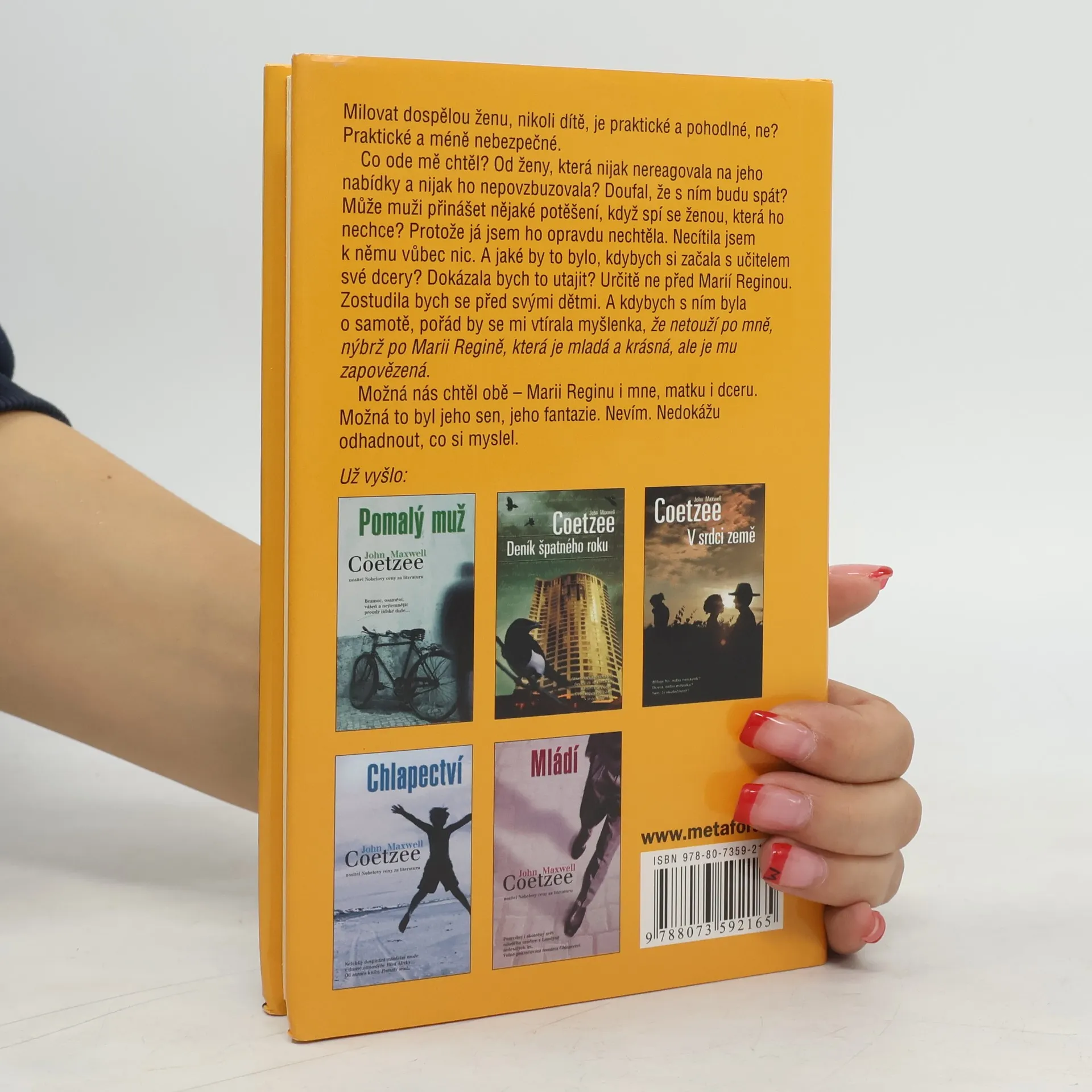Autobiografie, kterou její autor nikdy nenapsal, a vzpomínky na zemřelého, který stále ještě žije… Román Zrání uzavírá Coetzeeho třídílnou fiktivní autobiografii, a navazuje tak na knihy Chlapectví a Mládí. Svorníkem příběhu je mladý Angličan Vincent, který připravuje knihu o již zemřelém autorovi Johnu Maxwellu Coetzeem a schází se kvůli ní s pěticí lidí, jejichž životy se nějakým způsobem protnuly s životem tohoto spisovatele a z nichž každý z nich ho vidí jinýma očima. Pandán k těmto vzpomínkám tvoří Coetzeeho poznámky k chystané autobiografii, kterou ovšem nikdy nenapsal. Zrání je silná próza, již Coetzee prokládá drsným sebezničujícím humorem; a také něžná, jímavá knížka o podobách lásky a o vztahu zralého muže k otci.