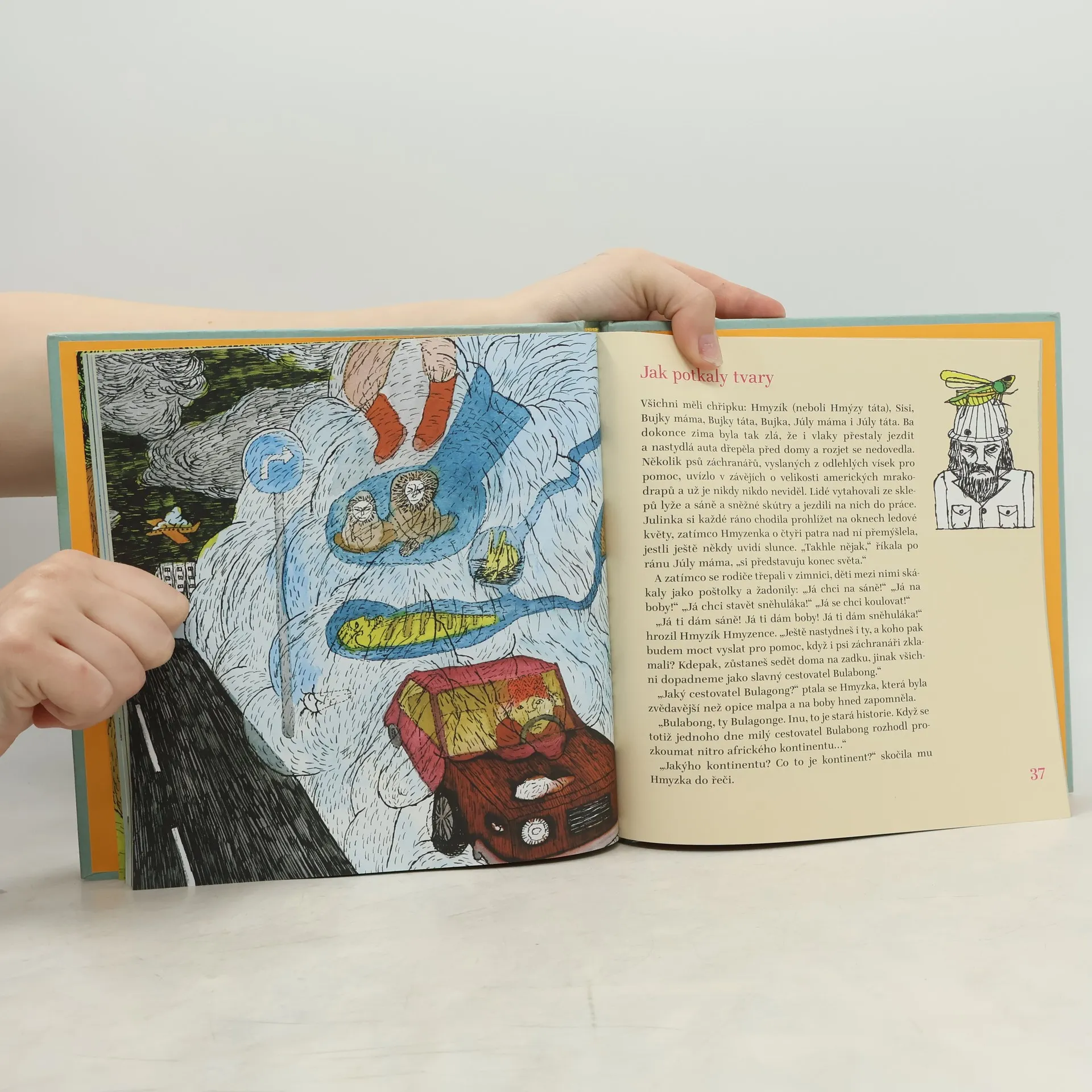 Júla a Hmýza, dvě malé holčičky, které žijí na sídlišti v paneláku číslo 3331 a vyrážejí objevovat svět. V jejich optice se mění banální novostavby ve schovávačky podivných tvorů, zanedbaná sídlištní zákoutí v neznámé končiny, les v nebezpečnou zónu plnou podivuhodných houbovitých stvoření. Sylva Fischerová, básnířka a filosofka má výjimečný cit pro jazyk i dětskou optiku, dialogy jejích dětských hrdinek jsou dokonale odpozorované, vážné i nesmírně vtipné zároveň. Číst její knihu to je opravdová dobrodružná výprava.