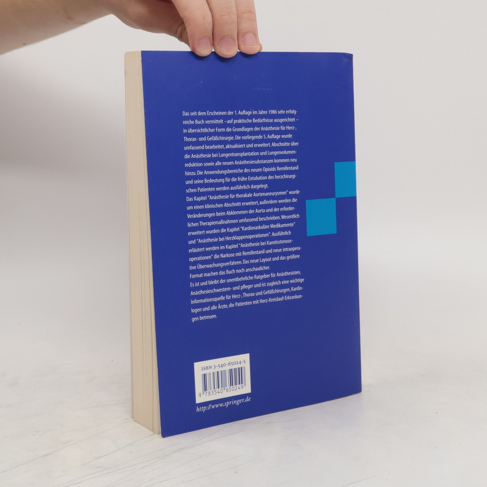 Das seit dem Erscheinen der 1. Auflage im Jahre 1986 sehr erfolgreiche Buch vermittelt, auf praktische Bed rfnisse ausgerichtet, in bersichtlicher Form die Grundlagen der An sthesie f r Herz-+, Thorax- und Gef chirurgie. Die vorliegende 5. Auflage wurde umfassend bearbeitet, aktualisiert und erweitert. Abschnitte ber die An sthesie bei Lungentransplantation und alle neuen An sthesiesubstanzen - um nur einige zu nennen - kommen neu hinzu. Im Kapitel An sthesie bei Karotisstenoseoperationen werden die Narkose mit Remifentanil und neue intraoperative berwachungsverfahren ausf hrlich dargelegt. Das neue Layout und gr ere Format machen das Buch noch anschaulicher. Es ist und bleibt der unentbehrliche Ratgeber f r An sthesisten, An sthesieschwestern- und Pfleger und ist zugleich wichtige Informationsquelle Herz-, Thorax- und Gef chirurgen, Kardiologen und alle rzte, die Patienten mit Herz-Kreislauferkrankungen betreuen.