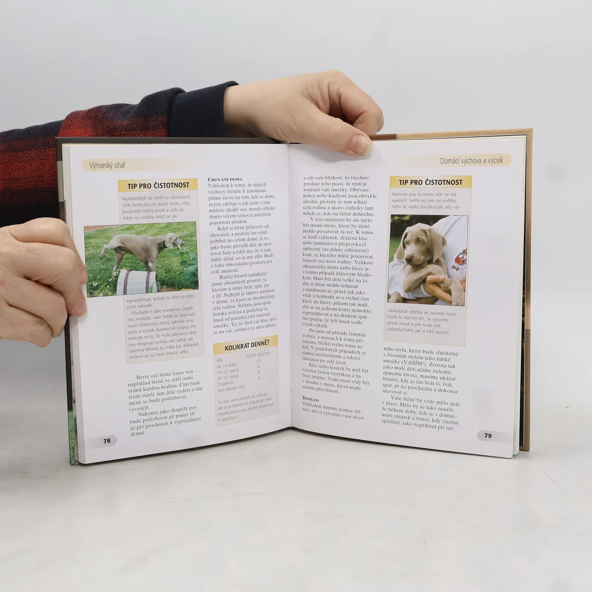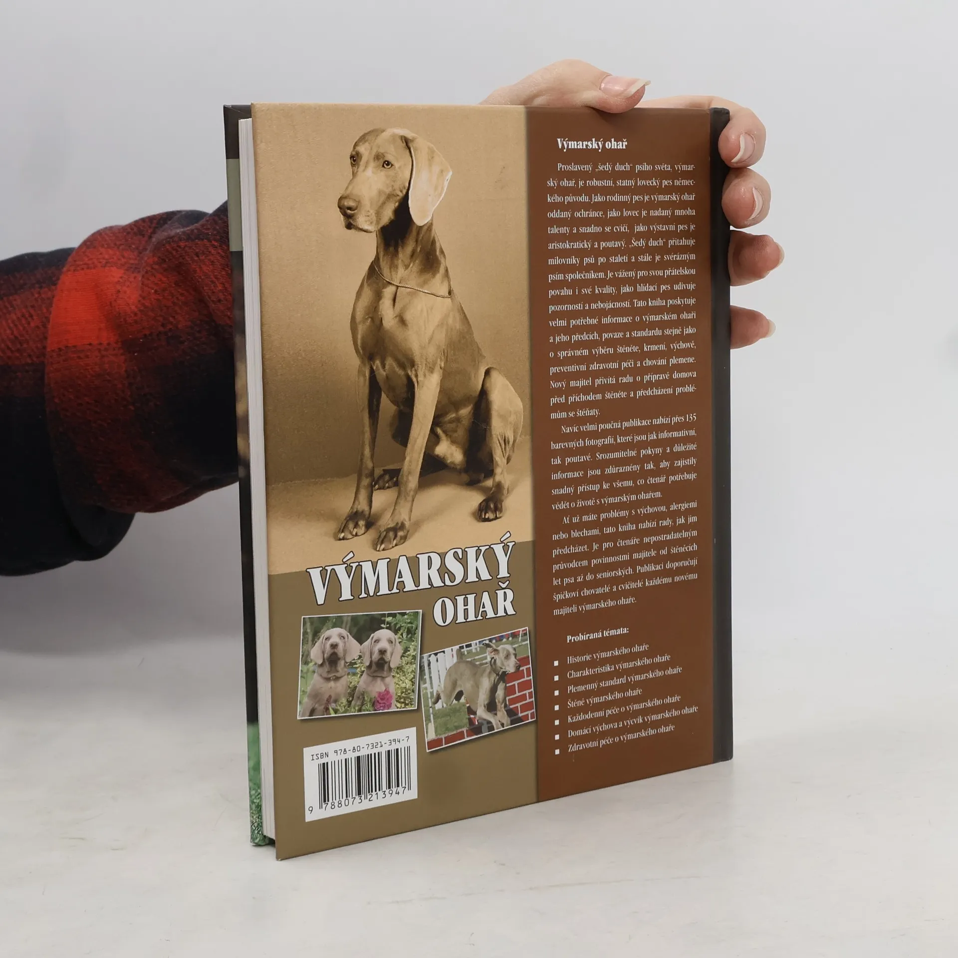 Špičková publikace obohacená množstvím barevných fotografií (více než 135) je doporučovaná předními odborníky každému majiteli výmarského ohaře, proslaveného "šedého ducha" psího světa, robustního, statného loveckého psa německého původu. Jako rodinný pes je výmarský ohař oddaný přítel a ochránce, jako lovec je nadaný mnoha talenty a snadno se cvičí, jako výstavní pes je aristokratický a poutavý.