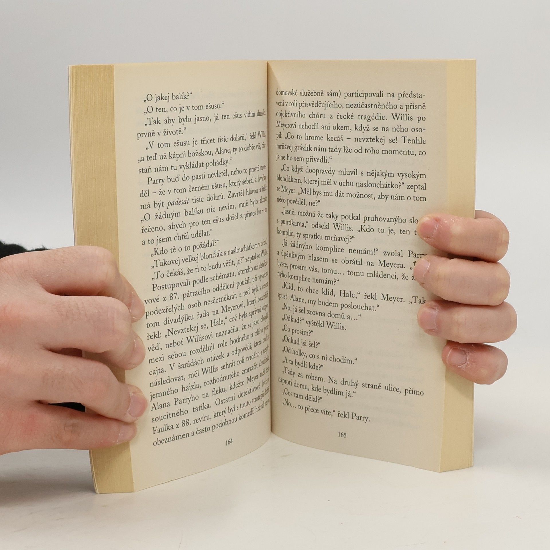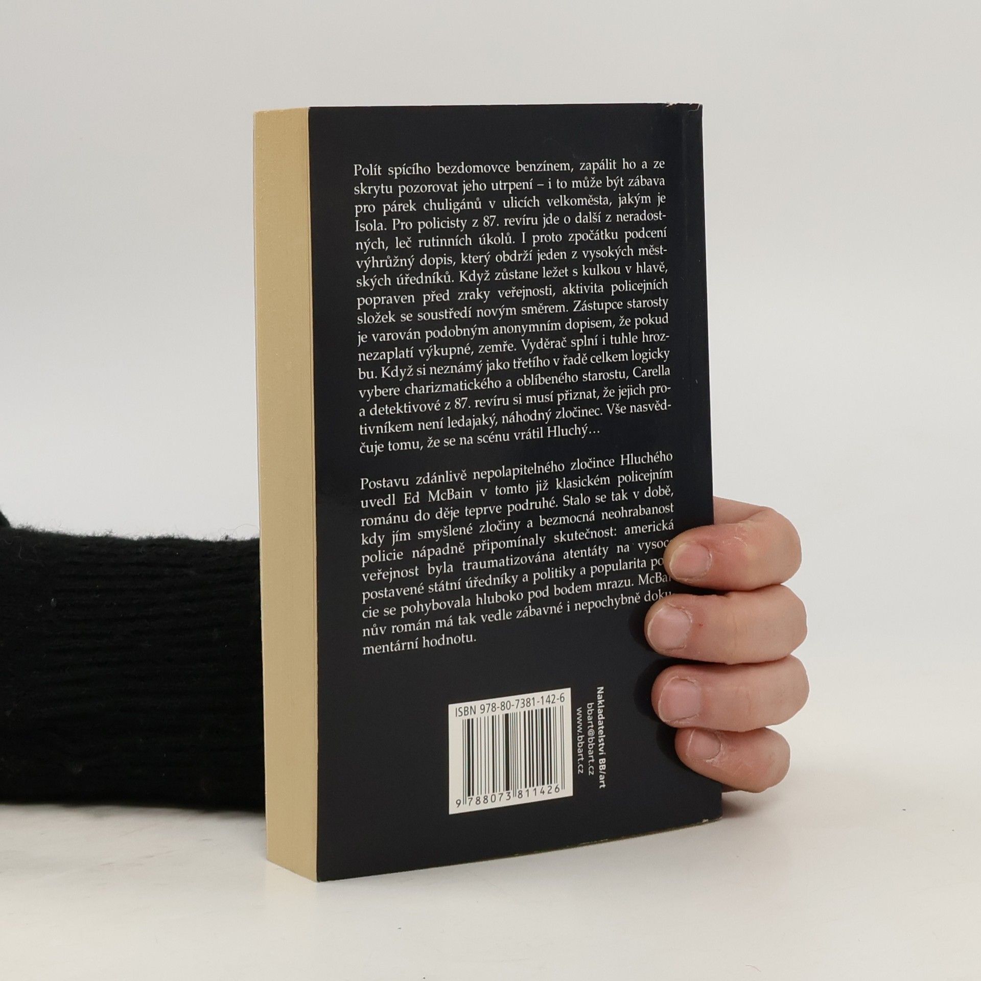 Není to přízrak, ale vysoký blonďák s naslouchátkem v uchu… Polít spícího bezdomovce benzínem, zapálit ho a ze skrytu pozorovat jeho utrpení – i to může být zábava pro párek chuligánů v ulicích velkoměsta, jakým je Isola. Pro policisty z 87. revíru jde o další z neradostných, leč rutinních úkolů. I proto zpočátku podcení výhrůžný dopis, který obdrží jeden z vysokých městských úředníků. Když zůstane ležet s kulkou v hlavě, popraven před zraky veřejnosti, aktivita policejních složek se soustředí novým směrem. Zástupce starosty je varován podobným anonymním dopisem, že pokud nezaplatí výkupné, zemře. Vyděrač splní i tuhle hrozbu. Když si neznámý jako třetího v řadě celkem logicky vybere charizmatického a oblíbeného starostu, Carella a detektivové z 87.revíru si musí přiznat, že jejich protivníkem není ledajaký, náhodný zločinec. Vše nasvědčuje tomu, že na scénu se po osmi letech vrátil Hluchý…