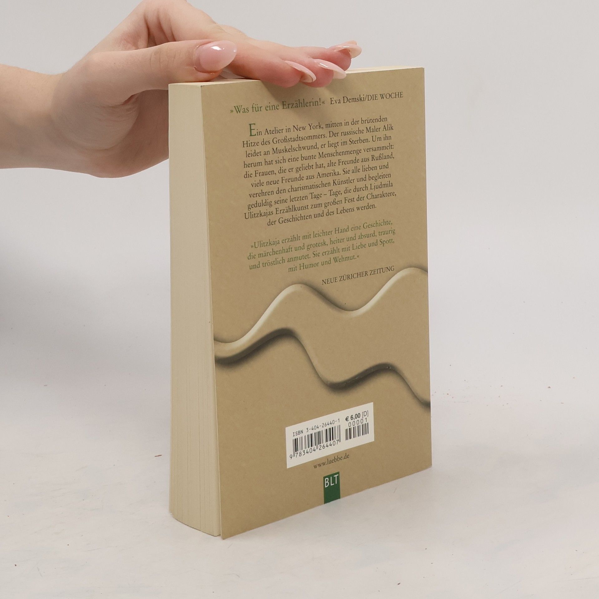 Ein Atelier in New York, mitten in der brütenden Hitze des Großstadtsommers. Der russische Maler Alik leidet an Muskelschwund, er liegt im Sterben. Um ihn herum hat sich eine bunte Menschenmenge versammelt: die Frauen, die er geliebt hat, die alten Freunde aus Rußland, viele neue Freunde aus Amerika. Sie alle lieben und verehren den charismatischen Künstler und begleiten geduldig seine letzten Tage - Tage, die durch Ljudmila Ulitzkajas Erzählkunst zum großen Fest der Charaktere, der Geschichten und des Lebens werden.