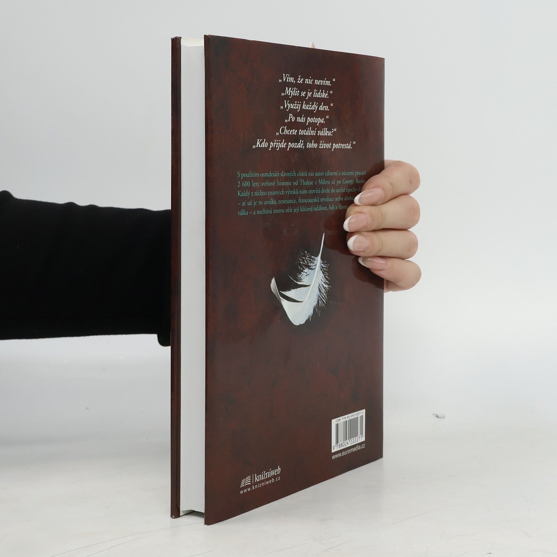 S použitím osmdesáti slavných citátů nás autor zábavně a názorně provází 2 600 lety světové historie od Thalese z Miletu až po George Busche. Každý z těchto známých výroků nám otevírá dveře do určité epochy dějin - ať už je to antika, renesance, francouzská revoluce nebo druhá světová válka -- a nechává znovu ožít její klíčové události, lidi a slavná místa.