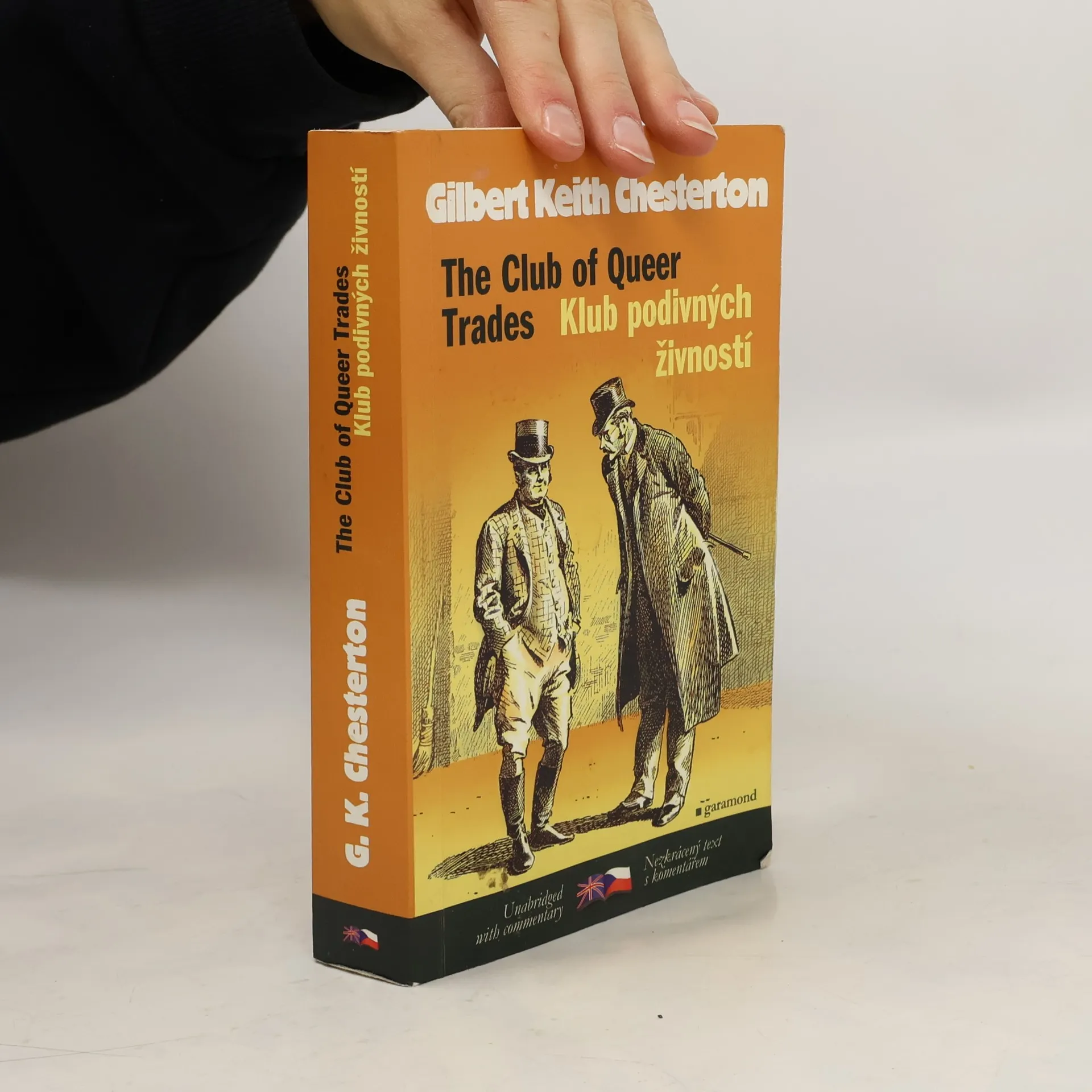 Chestertonovi se připisují v literatuře dva objevy: tím prvním je katolický kněz otec Brown, který se na rozdíl od Sherlocka Holmese řídí zásadně znalostí lidských postav a nikdy dedukcí. Druhým objevem, v literatuře i v životě mnohokrát napodobovaným, je klub gentlemanů, kteří musí k získání členství vykonávat co nejpodivnější zaměstnání. Dvojjazyčné vydání s gramatickým a jazykovým komentářem pod čarou.