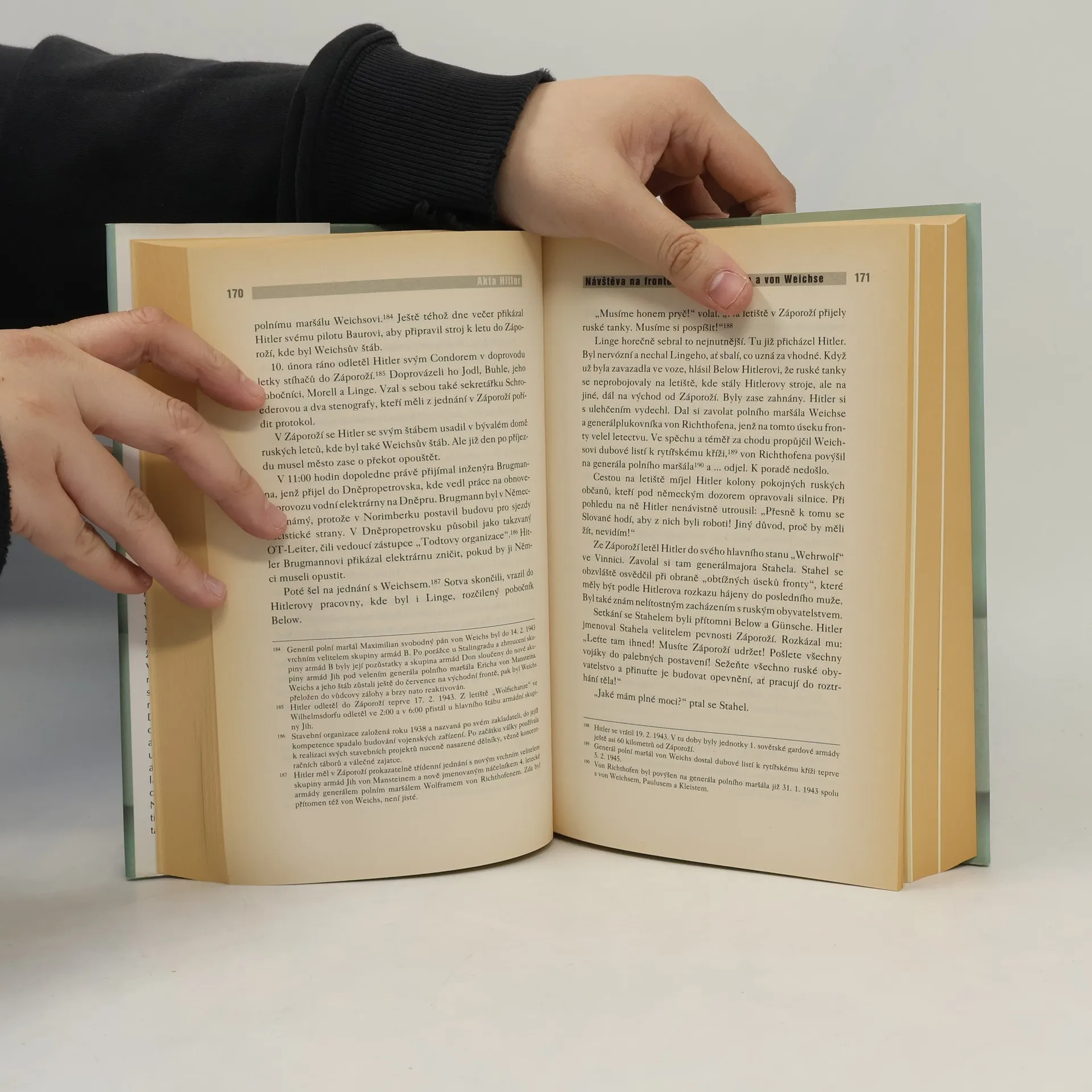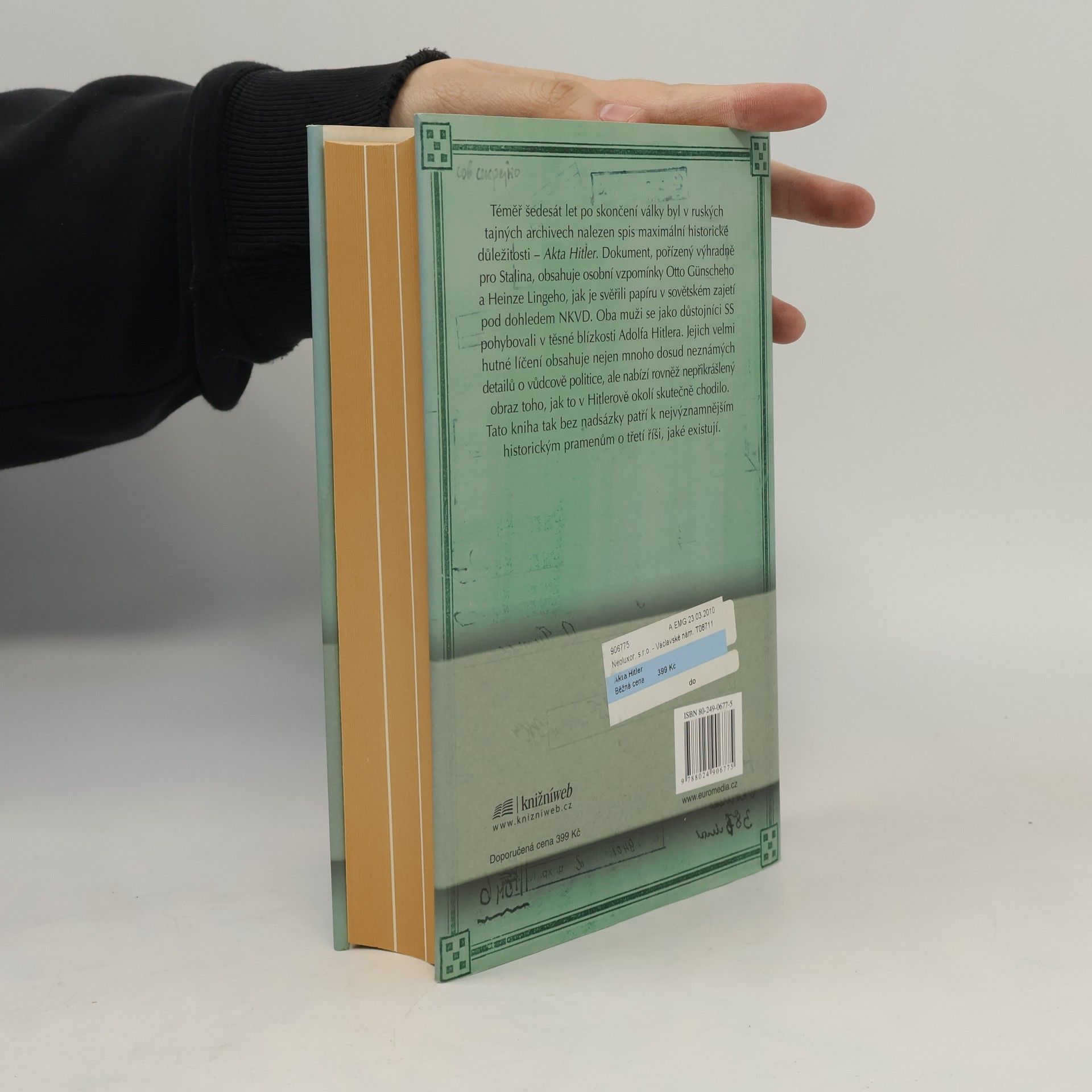 Téměř šedesát let po skončení války byl v ruských archivech nalezen spis maximální historické důležitosti: Akta Hitler. Dokument, pořízený výhradně pro Stalina, obsahuje osobní vzpomínky Otto Günscheho a Heinze Lingeho, jak je svěřili papíru v sovětském zajetí pod dohledem NKVD. Oba muži se jako důstojníci SS pohybovali v největší blízkosti Adolfa Hitlera. Jejich velmi hutné líčení obsahuje nejen mnoho dosud neznámých detailů o vůdcově politice, ale nabízí rovněž nepřikrášlený obraz toho, jak to v Hitlerově okolí skutečně chodilo. Akta Hitler tak bez nadsázky patří k nejvýznamnějším historickým pramenům o třetí říši, jaké existují.