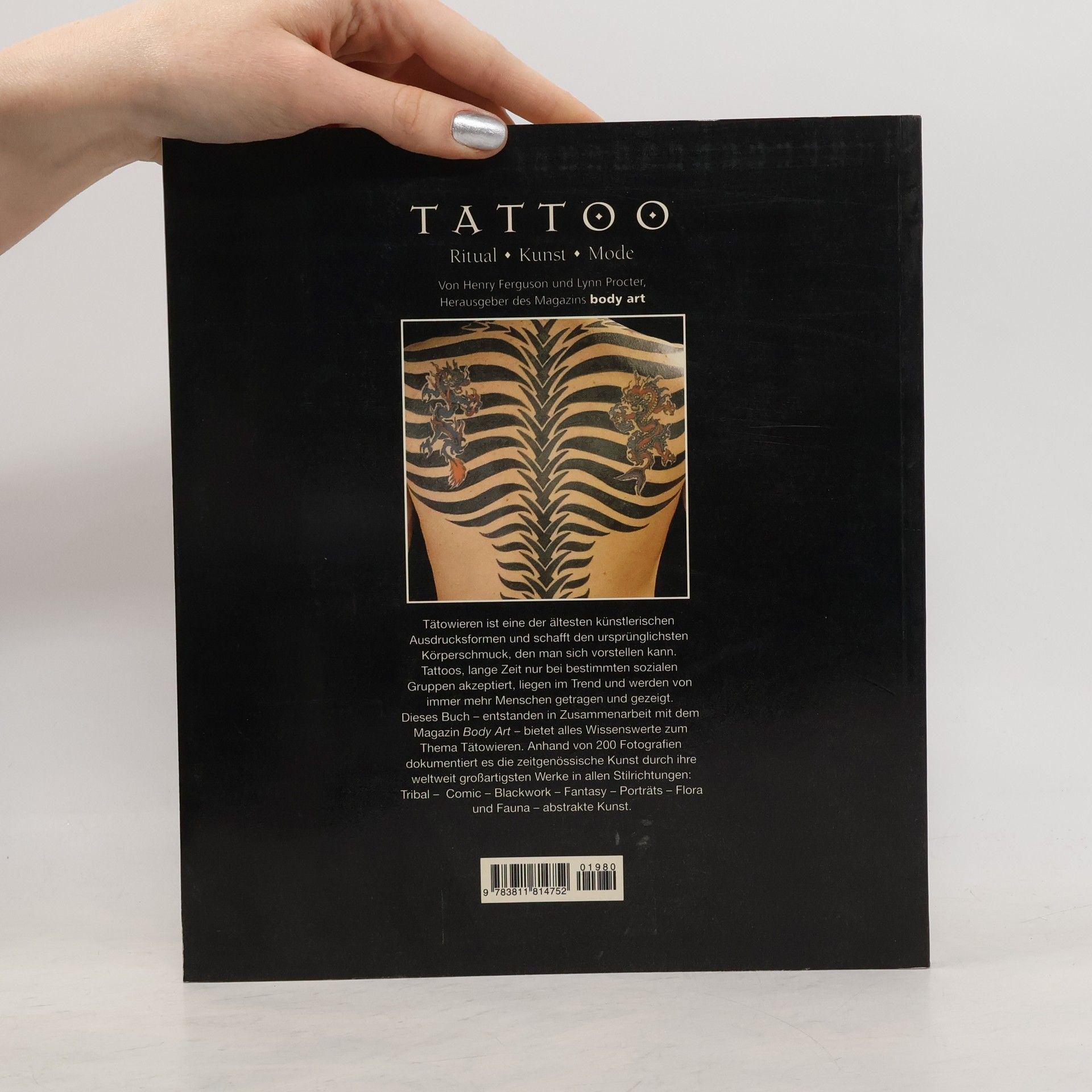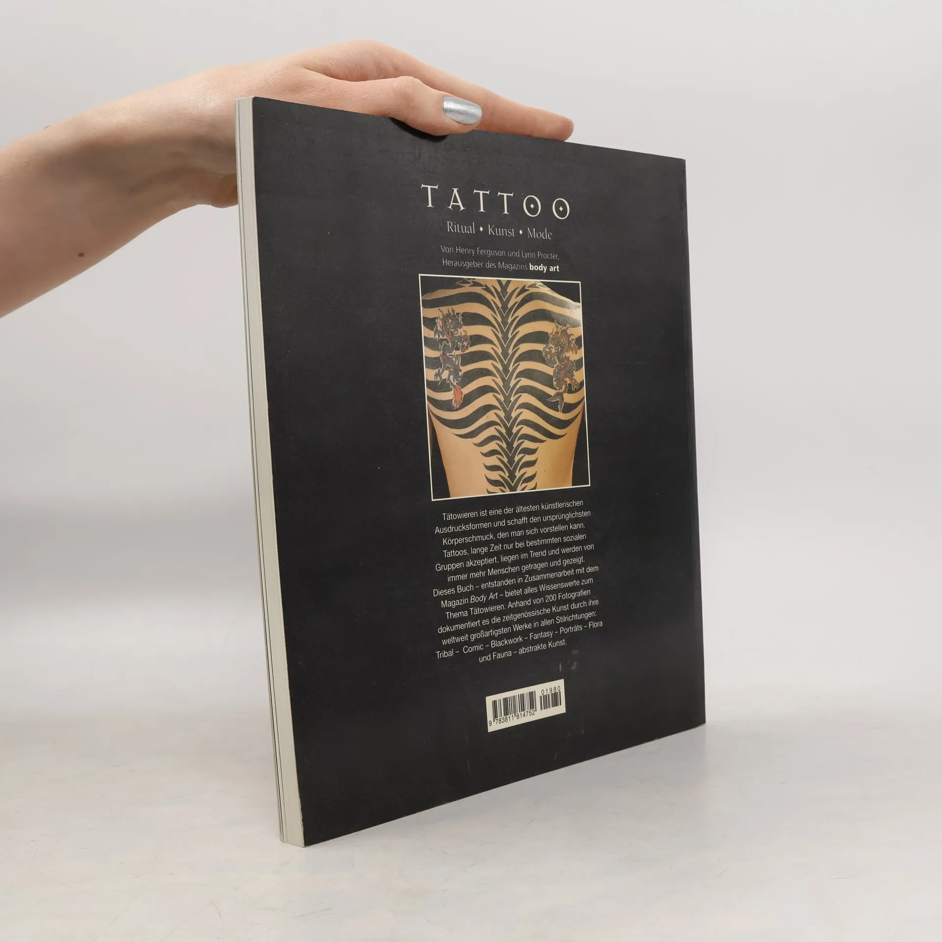 Tätowieren ist eine der ältesten künstlerischen Ausdrucksformen und schafft den ursprünglichsten Körperschmuck, den man sich vorstellen kann. Tattoos, lange Zeit nur bei bestimmten sozialen Gruppen akzeptiert, liegen im Trend und werden von immer mehr Menschen getragen und gezeigt. Dieses Buch -entstanden in Zusammenarbeit mit dem Magazin Body Art- bietet alles Wissenswerte zum Thema Tätowieren. Anhand on 200 Fotografien dokumentiert es die zeitgenössische Kunst durch ihre weltweit großartigsten Werke in allen Stilrichtungen: Tribal - Comic - Blackwork - Fantasy - Porträts - Flora und Fauna - abstrakte Kunst.