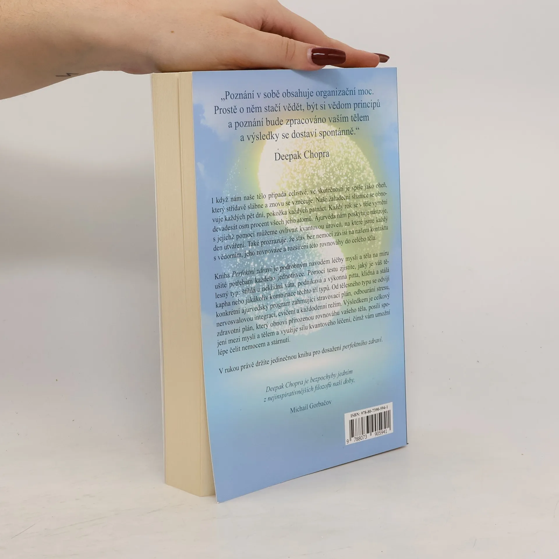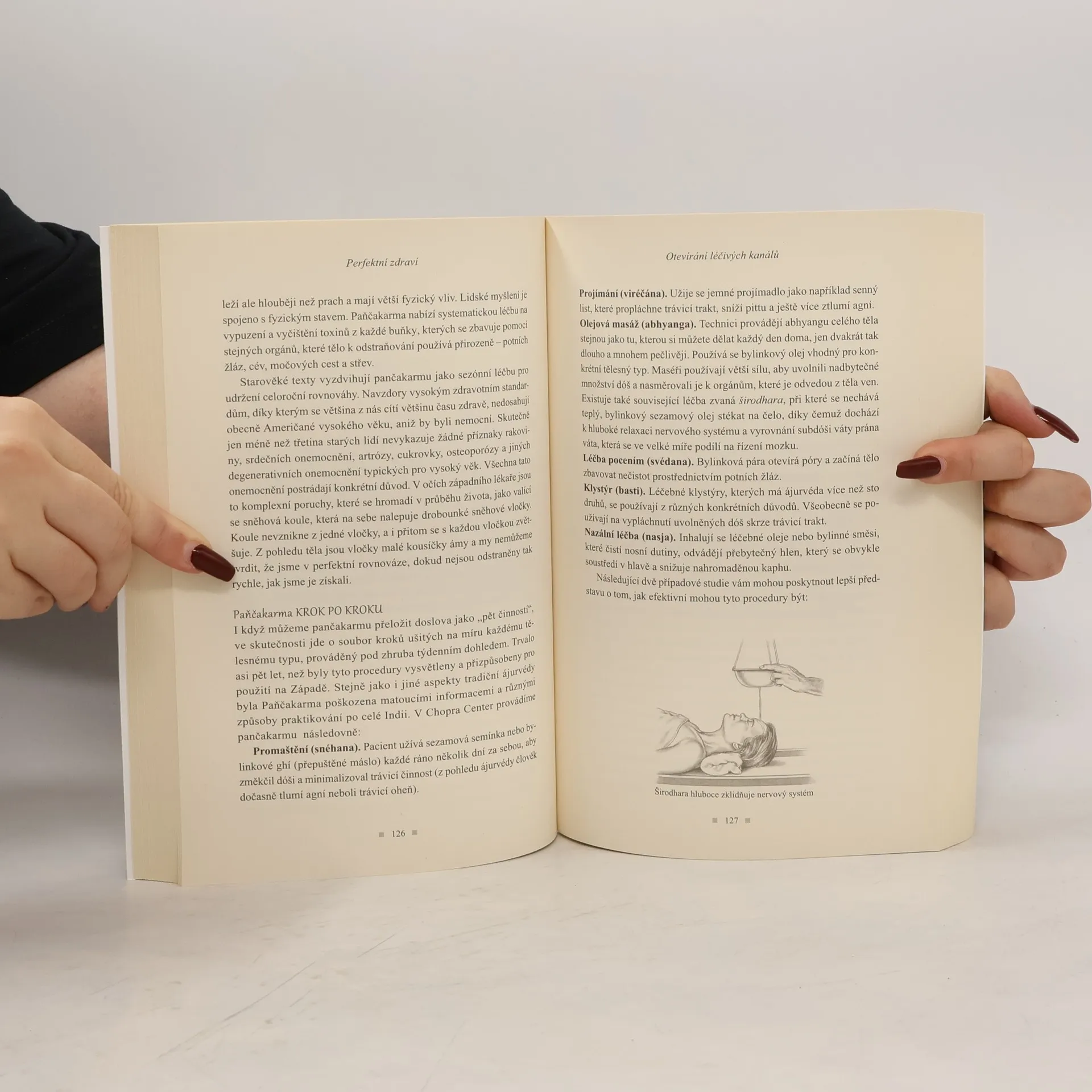 Jednota mysli a těla Kniha o jednotě mysli a těla, ve které můžete najít sami sebe. Obsahuje 3 části:1) Místo zvané perfektní zdraví - pozvánka do vyšší reality, určení tělesného typu a charakteristiky tělesných typů – Váta, Pitta, Kapha, detailně vypracovaný plán od přírody, obnovení rovnováhy, vyrovnaný život - obecné zásady2) Kvantové mechanické lidské tělo - otevírání kanálů uzdravení - Paňčakarma, transcendentální meditace, Prvotní zvuk, Pulzová diagnóza, Terapie marma, Technika blaha, Aromatická terapie, Hudební terapie Gandarva, Osvobození od závislosti, Rasajány - byliny pro dlouhověkost3) Život v souladu s přírodou: Denní režim, strava - jídlo pro dokonalou rovnováhu, cvičení pro tělesné typy, režim podle ročních období.